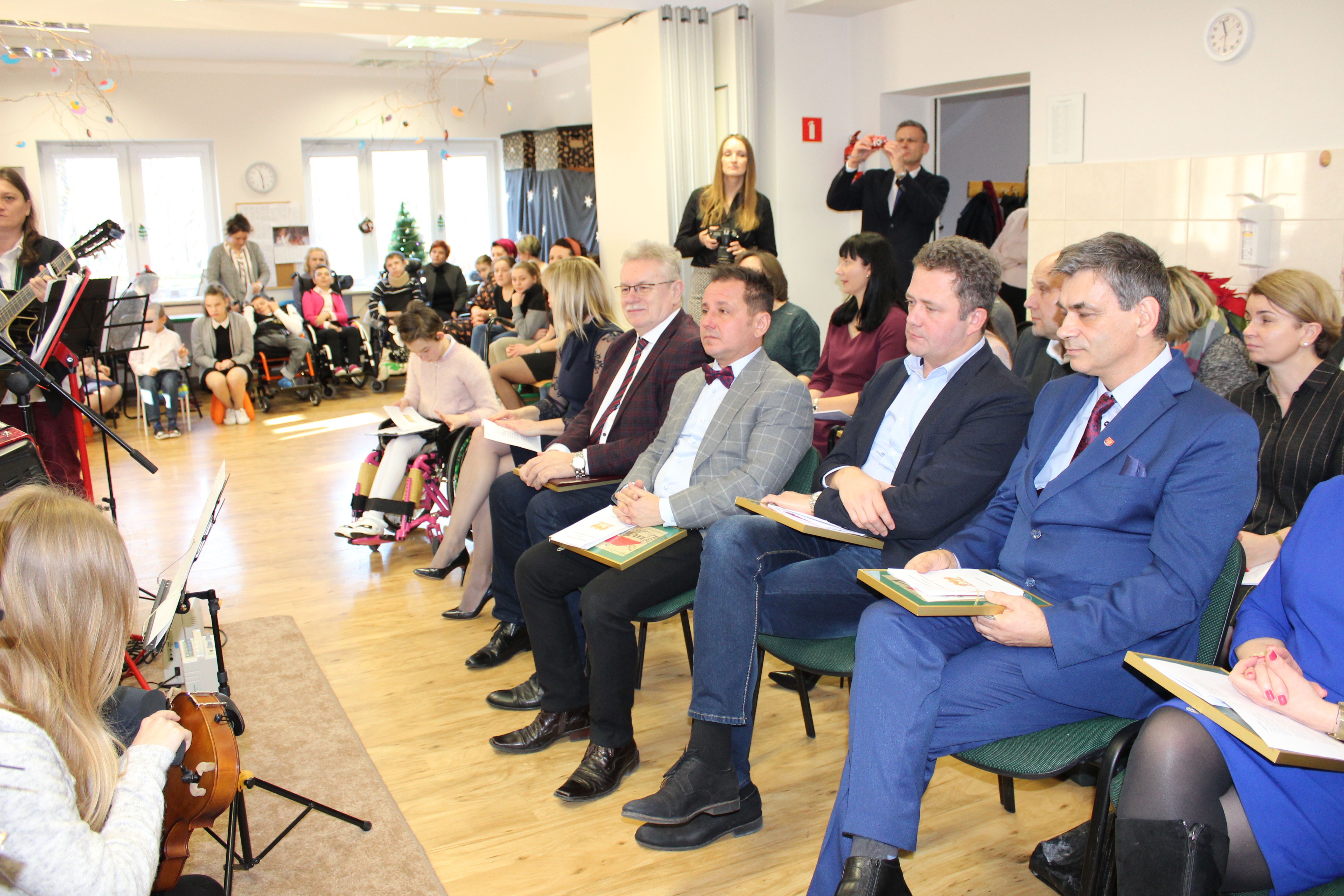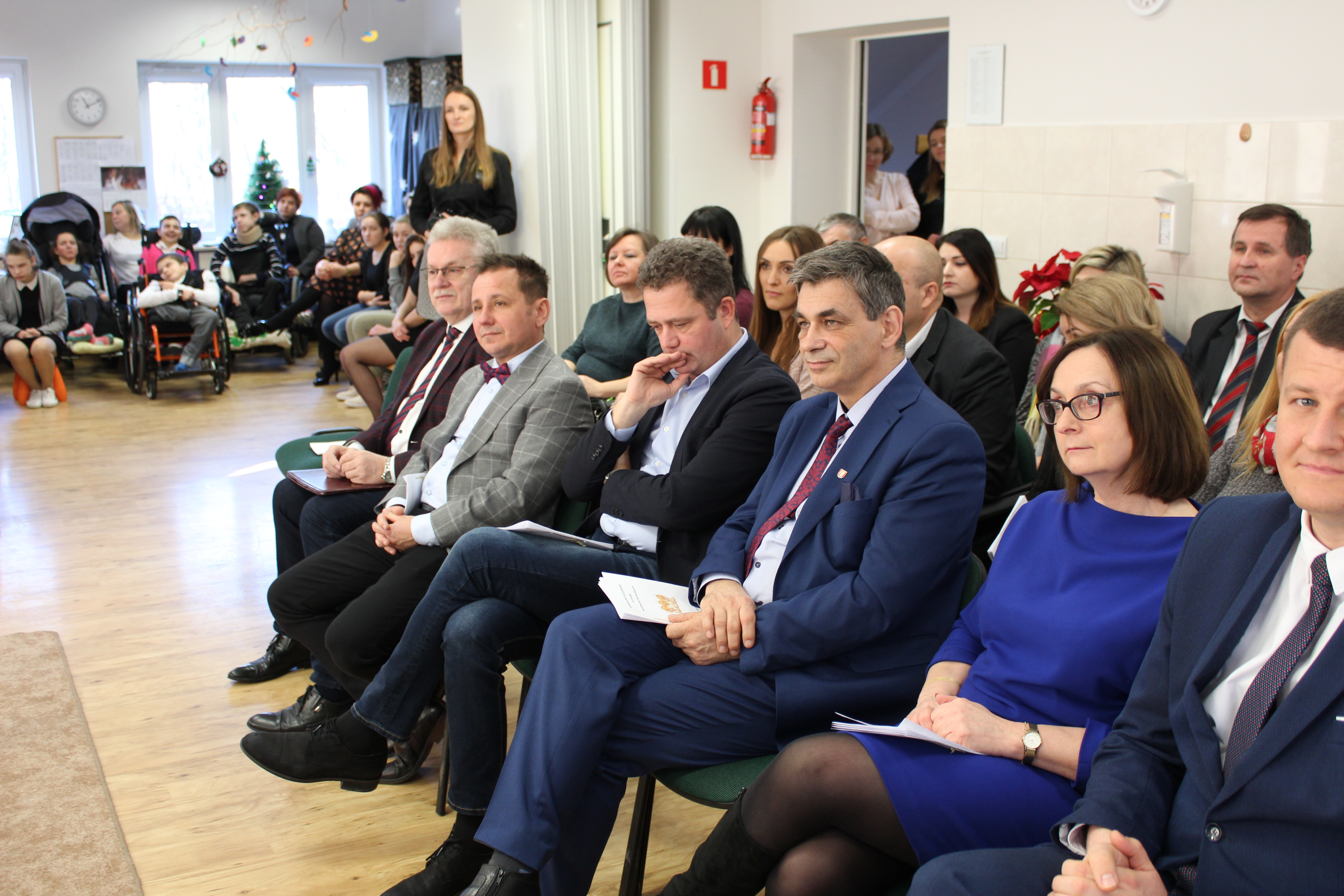 W spotkaniu uczestniczył Jerzy Dębski Dyrektor Oddziału Lubelskiego PFRON, Michał Pelczarski Wicestarosta Powiatu Łęczyńskiego, Małgorzata Romanko, Dyrektor ROPS w Lublinie, Elżbieta Brodzik Naczelnik Wydziału Zdrowia i Spraw Społecznych w Łęcznej. OREW w Łęcznej istnieje od 2011 roku. Placówka została powołana dla osób uspośledzonych w stopniu umiarkowanym, znacznym i głębokim. Obecnie do ośrodka uczęszcza 20 wychowanków. Wspólne kolędowanie podopiecznych, opiekunów oraz zaproszonych gości przy dźwiękach wspaniałej Kapeli Turobińskiej stanowiło czas i okazję do podziękowań i prezentacji dotychczasowych efektów podjętych działań dla osób niepełnosprawnych.