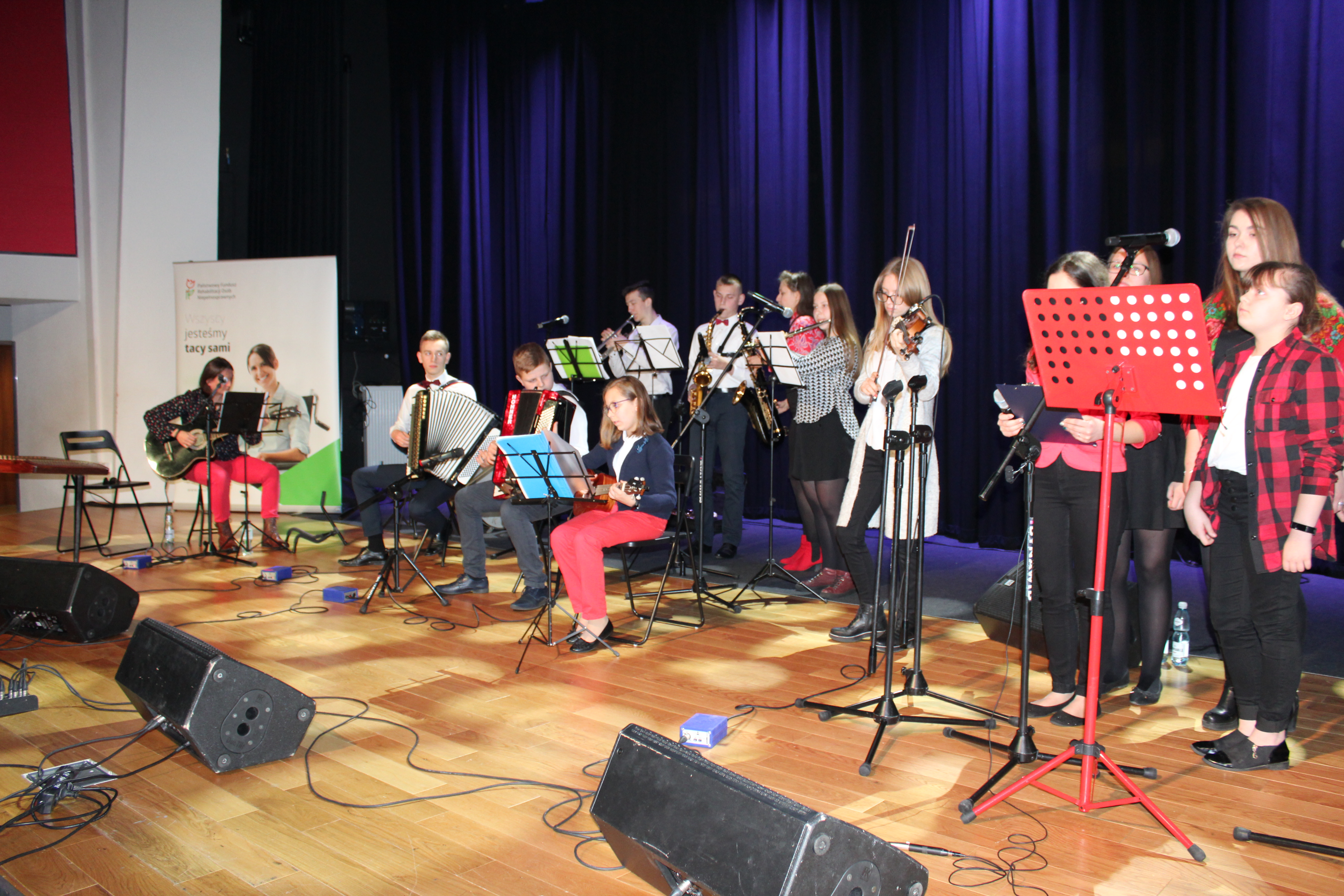 Wydarzenie poprowadzili: Jerzy Dębski Dyrektor Oddziału Lubelskiego PFRON oraz ks. Paweł Bartoszewski Dyrektor Środowiskowego Domu Samopomocy ,,Misericordia”. Wśród przybyłych gości znaleźli się między innymi: ks. dr hab. Andrzej Kiciński prorektor KUL, Jacek Figarski Dyrektor PCPR w Lublinie, Małgorzta Romanko Dyrektor ROPS w Lublinie oraz Dyrektorzy DPS-ów, ŚDS-ów, ZAZ-ów, SOSW-ów. W wydarzeniu udział wzięli podopieczni warsztatów terapii zajęciowych, stowarzyszeń oraz wszystkich ośrodków działających na rzecz osób niepełnosprawnych. Repertuar kolędowy zaprezentowały dwa zespoły wokalno - instrumentalne z naszego regionu: Kapela Turobińska - prowadzona przez panią Edytę Prokopiuk z Turobina oraz Drewutnia – zespół folkowy prowadzony przez Piotra Ziółka. Obie kapele, oprócz pięknego śpiewu zachwyciły bogactwem zaprezentowanych instrumentów, dzięki którym zgromadzone osoby mogły poczuć rodzinną i świąteczną atmosferę. Występy zespołów oklaskiwało ok. 300 osób uczestniczących w spotkaniu.
