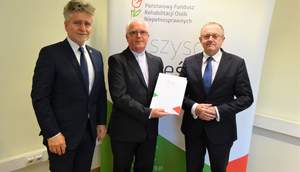 W siedzibie Oddziału Świętokrzyskiego PFRON odbyło się podpisanie kolejnej umowy w ramach Modułu III Nabór Drugi programu „Pomoc Obywatelom Ukrainy z Niepełnosprawnością”. Dokument podpisał dyrektor Oddziału Świętokrzyskiego PFRON Andrzej Michalski oraz prezes fundacji „San Giovanni” ks. Zbigniew Stanios. Przy podpisaniu umowy obecny był także senator Krzysztof Słoń. Pan senator powiedział, że jest bardzo zadowolony z faktu, iż na ziemi świętokrzyskiej są osoby i instytucje, które niosą pomoc nie tylko Polakom, ale również potrzebującym niepełnosprawnym Ukraińcom.