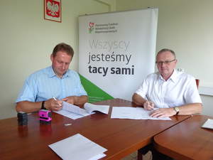W gminie Bodzentyn zostanie utworzone kolejne już stanowisko pracy dla osoby z niepełnosprawnością. Trzeciego sierpnia Dariusz Skiba burmistrz Bodzentyna i Andrzej Michalski dyrektor Oddziału PFRON podpisali umowę w ramach programu „STABILNE ZATRUDNIENIE – osoby niepełnosprawne w administracji i służbie publicznej”. -Dzisiaj podpisałem umowę na utworzenie stanowiska pracy dla osoby z niepełnosprawnością – kwota 34 tys. zł. Nasz nowy pracownik jest młodą osobą, będzie pracował fizycznie. W ramach projektu zakupimy nową kosiarkę samojezdną, którą będzie kosił, trawę z boisk, wokół zbiornika wodnego w Wilkowie, a także wokół ruin zamku. To nowe urządzenie będzie służyć również do odśnieżania chodników i ścieżek rowerowych. – mówi burmistrz Bodzentyna. Jak podkreśla, to już kolejne środki z programu STABILNE ZATRUDNIENIE, o które aplikowali do PFRON. - Już jeden wniosek został przez nas zrealizowany. Osoba, z niepełnosprawnością, która została przyjęta do pracy, sprawdziła się, jesteśmy z niej zadowoleni i teraz pracuje na etacie. Jest kolejnym dobrym urzędnikiem gminy Bodzentyn – mówi burmistrz.