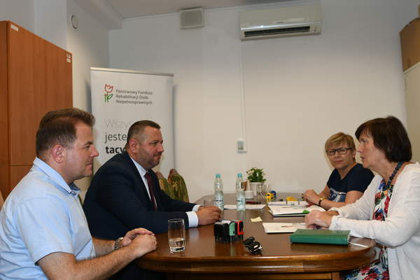 Podpisanie umowy stało się okazją do rozmowy o Systemie Obsługi Wsparcia, czyli o zaletach korzystania z nowoczesnej platformy, za pomocą której Osoby Niepełnosprawne i jednostki działające na ich rzecz mogą elektronicznie składać wnioski o wsparcie finansowane przez PFRON.