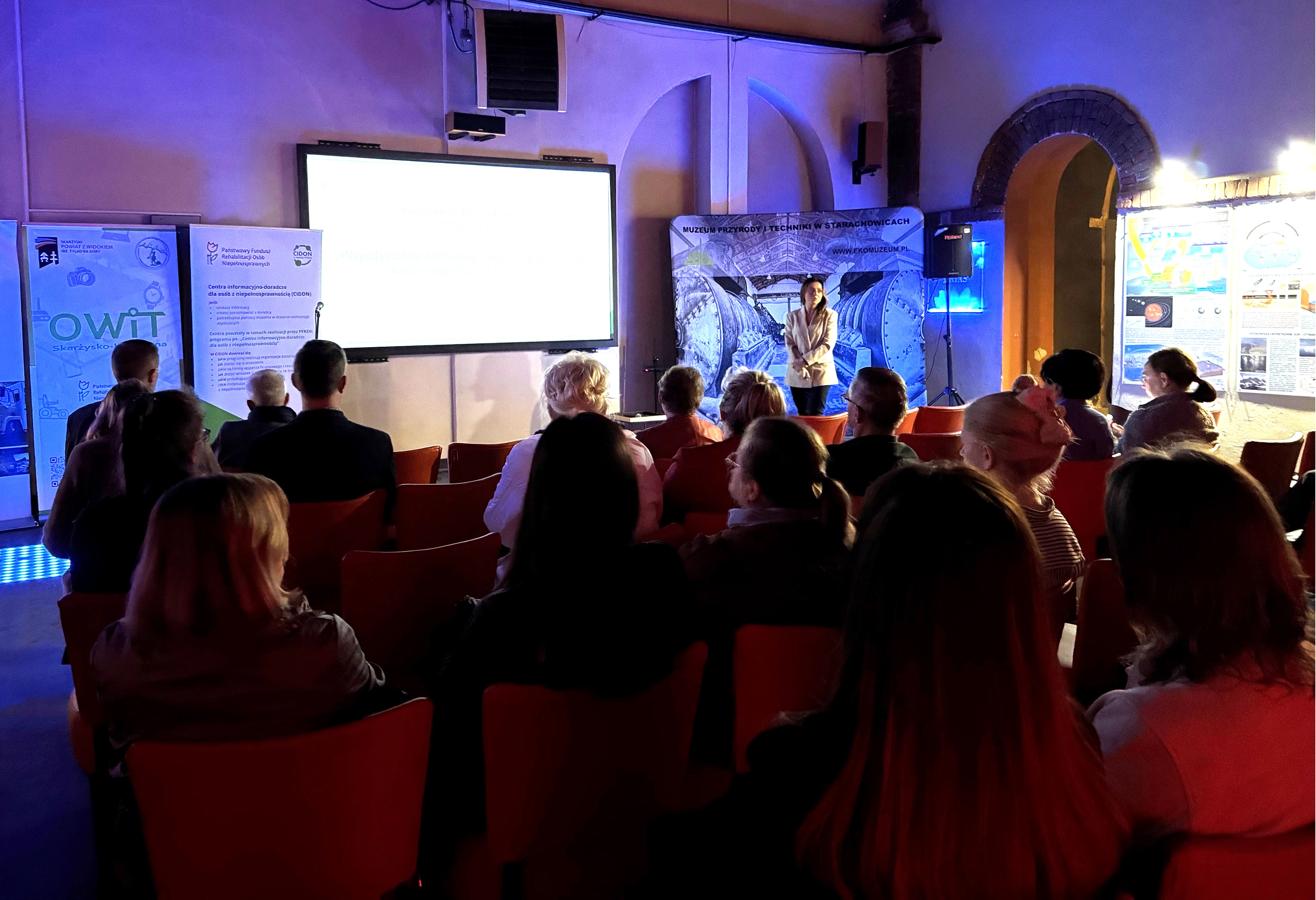 Kolejne spotkanie z przedstawicielami samorządów, w tym z pracownikami socjalnymi kilku gmin a także PCPR ze Starachowic odbyło się 16.04.2025 r. w sali Muzeum Przyrody i Techniki przy ul. J. Piłsudskiego w Starachowicach. Wydarzenie zorganizowane przez Oddział Świętokrzyski PFRON przy współpracy PCPR Starachowice poświęcone było działalności PFRON, a w szczególności działaniom Centrum Informacji Doradczego dla osób z niepełnosprawnością. W wydarzeniu oprócz pracowników socjalnych wziął udział Paweł Babicki starosta starachowicki. Dyrektor Oddziału Świętokrzyskiego Andrzej Michalski przedstawił zadania realizowane przez Oddział oraz kwestie związane z dostępnością. Wyjaśnił również procedury składania skargi na brak dostępności. O „Centrum informacyjno- doradczym dla osób z niepełnosprawnością” mówiła Małgorzata Grabka z Oddziału Świętokrzyskiego PFRON: a Katarzyna Curyło przekazała informację nt. programu „Wypożyczenia technologii wspomagających dla osób z niepełnosprawnością”, którego celem jest zwiększenie samodzielności i niezależności osób niepełnosprawnych poprzez zapewnienie dostępności do technologii wspomagających oraz możliwość bezpłatnego wypożyczenia sprzętu. Paweł Garbuzik z Ośrodka Wsparcia i Testów ze Skarżyska-Kamiennej przedstawił informacje na temat funkcjonalności Ośrodka w którym osoby z niepełnosprawnością mogą bezpłatnie przetestować specjalistyczne technologie asystujące.