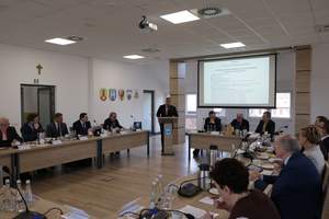 Podczas wystąpienia na uroczystej sesji Rady Powiatu Dyrektor Oddziału Pomorskiego PFRON podsumował wieloletnią, opartą na zasadzie subsydiarności współpracę na rzecz osób niepełnosprawnych z powiatem kartuskim. Omówił zasady ubiegania się przez Warsztaty Terapii Zajęciowej o dofinansowanie ze środków PFRON na modernizację oraz przeciwdziałanie degradacji istniejącej infrastruktury WTZ w ramach obszaru F Programu Wyrównywania Różnic Między Regionami III.