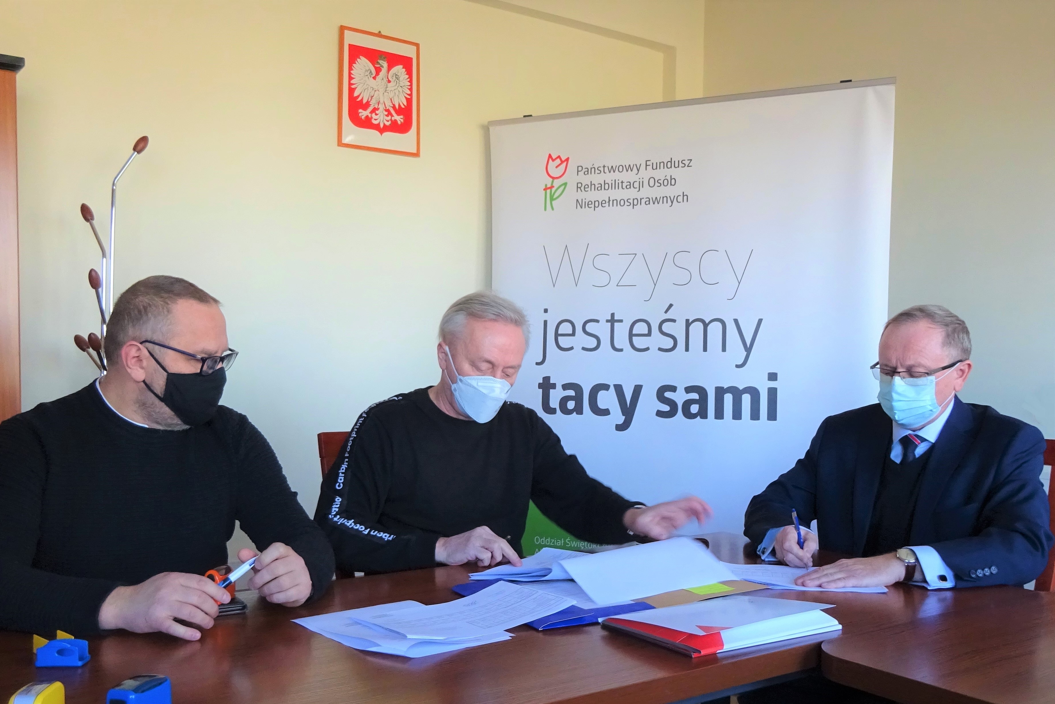 W Oddziale Świętokrzyskim PFRON została zawarta umowa z kolejnym beneficjentem. Dyrektor Oddziału Andrzej Michalski oraz Zbigniew Bartczak przedstawiciel firmy: Adax serwis spółka Jawna i wspólnicy podpisali umowę na refundację kosztów administracyjnych. Umowa została zawarta na rok 2022, w ramach art. 32 ust. 1 pkt 2 ustawy z 27 sierpnia 1997 r. o rehabilitacji (…), a dotyczą one udzielania pomocy ze środków Funduszu z przeznaczeniem na refundację dodatkowych kosztów ponoszonych przez Zakłady Pracy Chronionej z tytułu zatrudnienia osób z niepełnosprawnościami, w tym wykonywania szczególnych czynności administracyjnych. W ramach tego zadania, pracodawcy posiadający status zakładu pracy chronionej mogą otrzymać zwrot kosztów:
