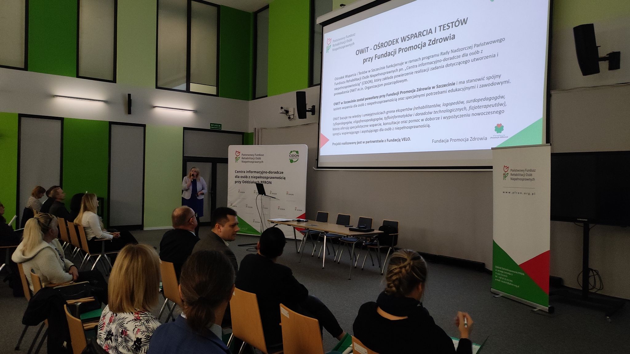 Konferencja promowała nowy program PFRON zapewniający indywidualne wsparcie dla osób z niepełnosprawnościami, w oparciu o powstałe w Oddziale Zachodniopomorskim PFRON Centra Informacyjno – Doradcze (CIDON). CIDON zatrudnia specjalistów posiadających wiedzę i umiejętności, które pozwolą pomóc osobie z niepełnosprawnościami odnaleźć możliwie najlepsze rozwiązania umożliwiające jej powrót do aktywności społecznej i zawodowej. Pomoc w ww. zakresie świadczona będzie również dla rodzin i opiekunów osób z niepełnosprawnościami. Przy CIDON w Szczecinie, powstaje także Ośrodek Wsparcia i Testów (OWIT), w którym osoba z niepełnosprawnościami będzie mogła, przy wsparciu specjalistów, dokonać wyboru adekwatnych technologii asystujących.