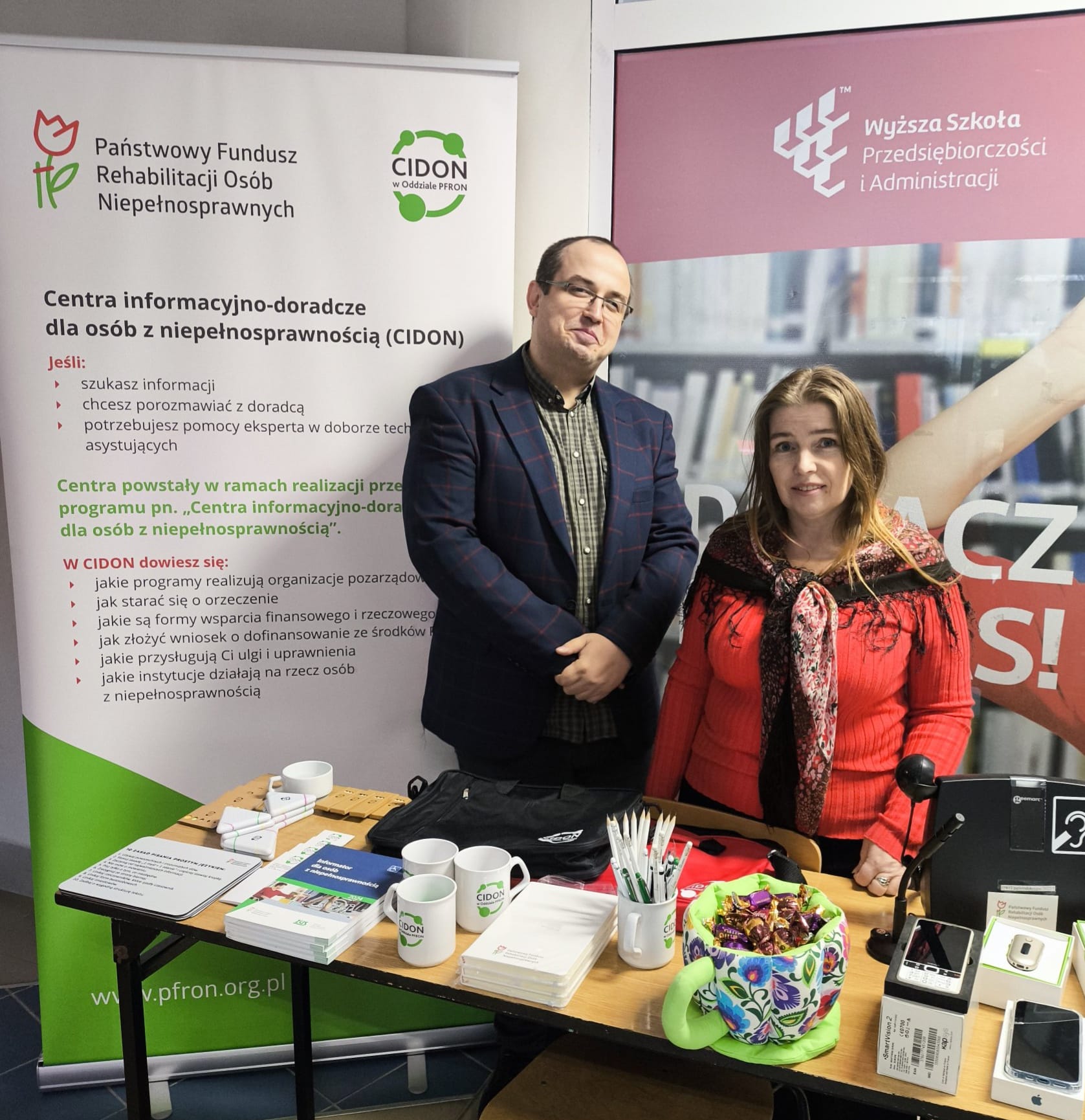 Podczas wydarzenia, pracownicy Oddziału Lubelskiego PFRON – Barbara Sadowska-Burlita i Irena Kijek – prowadzili stoisko informacyjne, gdzie uczestnicy mogli uzyskać szczegółowe informacje na temat programów PFRON, dostępnych form wsparcia oraz ulg przysługujących osobom z niepełnosprawnościami.