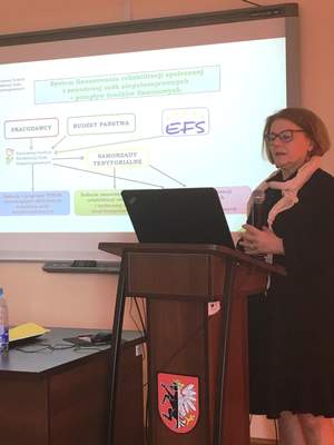 Na zaproszenie Starosty Noteckiego, w urokliwej Przystani nad brzegiem Noteci w Nakle, odbyła się w dniu 9 kwietnia br. konferencja nt. Pomoc społeczna – kierunki rozwoju, szanse i zagrożenia dla samorządu terytorialnego. Impulsem do zainteresowania problematyką pomocy społecznej w funkcjonowaniu samorządu w powiecie nakielskim są obchody jubileuszu 20-lecia samorządu powiatowego, który przypada w 2018 roku. W spotkaniu uczestniczyli przedstawiciele władz powiatu i gmin, radni rady powiatu, dyrektorzy, kierownicy i przedstawiciele DPS-ów, MOPS-ów, ŚDS-ów, WTZ-ów, PCPR-ów, jednostek oświatowych, stowarzyszeń i innych podmiotów współpracujących w zakresie szeroko rozumianej pomocy społecznej. Zaproszeni goście wysłuchali wystąpień licznych prelegentów, m.in.: Doroty Hass – dyrektor Wydziału Polityki Społecznej Kujawsko-Pomorskiego Urzędu Wojewódzkiego w Bydgoszczy, Adama Szponki – dyrektora Regionalnego Ośrodka Polityki Społecznej w Toruniu, Marii Dreszer – naczelnika Wydziału Integracji Osób Niepełnosprawnych Urzędu Marszałkowskiego w Toruniu, a także Aleksandry Gierej – Dyrektor Kujawsko-Pomorskiego Oddziału PFRON. Przedstawiciele PFRON przedstawili obecnym wykład pt. „Rola Państwowego Funduszu Rehabilitacji Osób Niepełnosprawnych w systemie wsparcia osób z niepełnosprawnościami w środowisku lokalnym”.