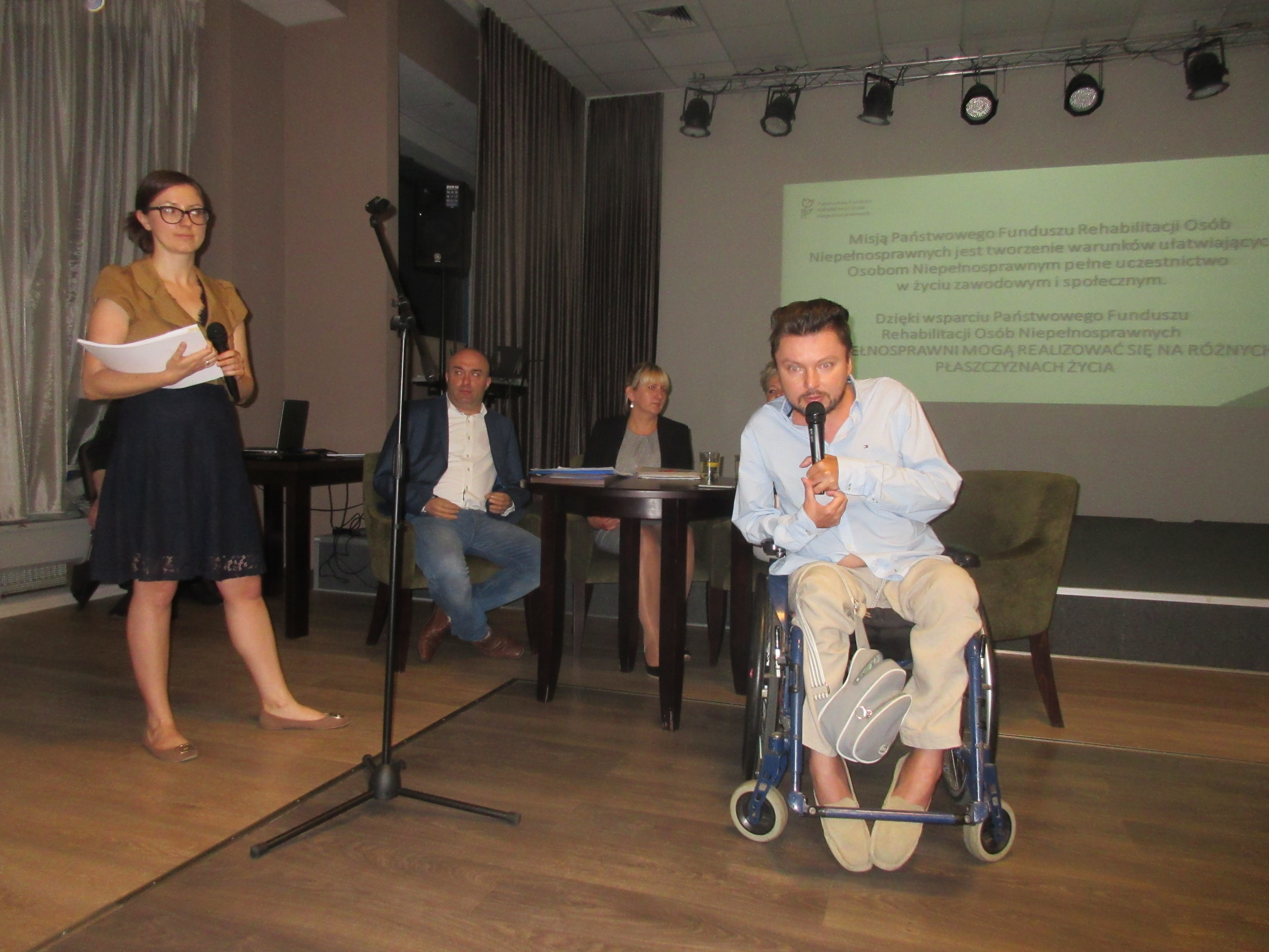 W dniu 30 maja 2017 r. w Centrum Konferencyjnym „Creator Strefa Spotkań” we Wrocławiu odbyła się konferencja „(NIE)PEŁNOSPRAWNI NA RÓŻNYCH PŁASZCZYZNACH ŻYCIA” zorganizowana przez Oddział Dolnośląski Państwowego Funduszu Rehabilitacji Osób Niepełnosprawnych. W konferencji uczestniczyły organizacje oraz instytucje z Dolnego Śląska. Wśród nich znalazły się m.in.: Fundacja na Rzecz Rozwoju Audiodeskrypcji „KATARYNKA”, Polskie Stowarzyszenie na Rzecz Osób z Niepełnosprawnością Intelektualną Koło w Świdnicy, Polskie Stowarzyszenie na Rzecz Osób z Niepełnosprawnością Intelektualną Koło w Głogowie, Milickie Stowarzyszenie Przyjaciół Dzieci i Osób Niepełnosprawnych, Stowarzyszenie Osób Niepełnosprawnych w Wołowie, Dolnośląskie Stowarzyszenie Pomocy Dzieciom i Młodzieży z MPDz „Ostoja”, Stowarzyszenie św. Celestyna z Mikoszowa, Dom Pomocy Społecznej z Wronińca, Uczniowski Klub Sportowy Niewidomych „Sprint” z Wrocławia, Wojewódzkie Zrzeszenie Sportowe Niepełnosprawnych „Start” wraz z Paraolimpijczykami z RIO - Justyną Koronobys oraz Jakubem Tokarzem. W konferencji uczestniczyli także przedstawiciele samorządów: Rzecznik ds. Osób Niepełnosprawnych Urzędu Miejskiego we Wrocławiu Bartłomiej Skrzyński, Starosta Milicki Krzysztof Osmelak, Wicestarosta Wołowski Władysław Boczar oraz Agnieszka Dyk – Naczelnik Wydziału Zdrowia, Polityki Społecznej i Osób Niepełnosprawnych Starostwa Powiatowego w Głogowie. Podczas konferencji, która cieszyła się dużym zainteresowaniem zaprezentowane zostały różne płaszczyzny życia, w których spełniają się osoby z różnymi niepełnosprawnościami m.in. sport, sztuka kulinaria, teatr, taniec, muzyka, poezja oraz zatrudnienie wspomagane, a uczestnicy Warsztatów Terapii Zajęciowej Dolnośląskiego Stowarzyszenia Pomocy Dzieciom i Młodzieży z MPDz „Ostoja” zrealizowali materiał filmowy z konferencji.
