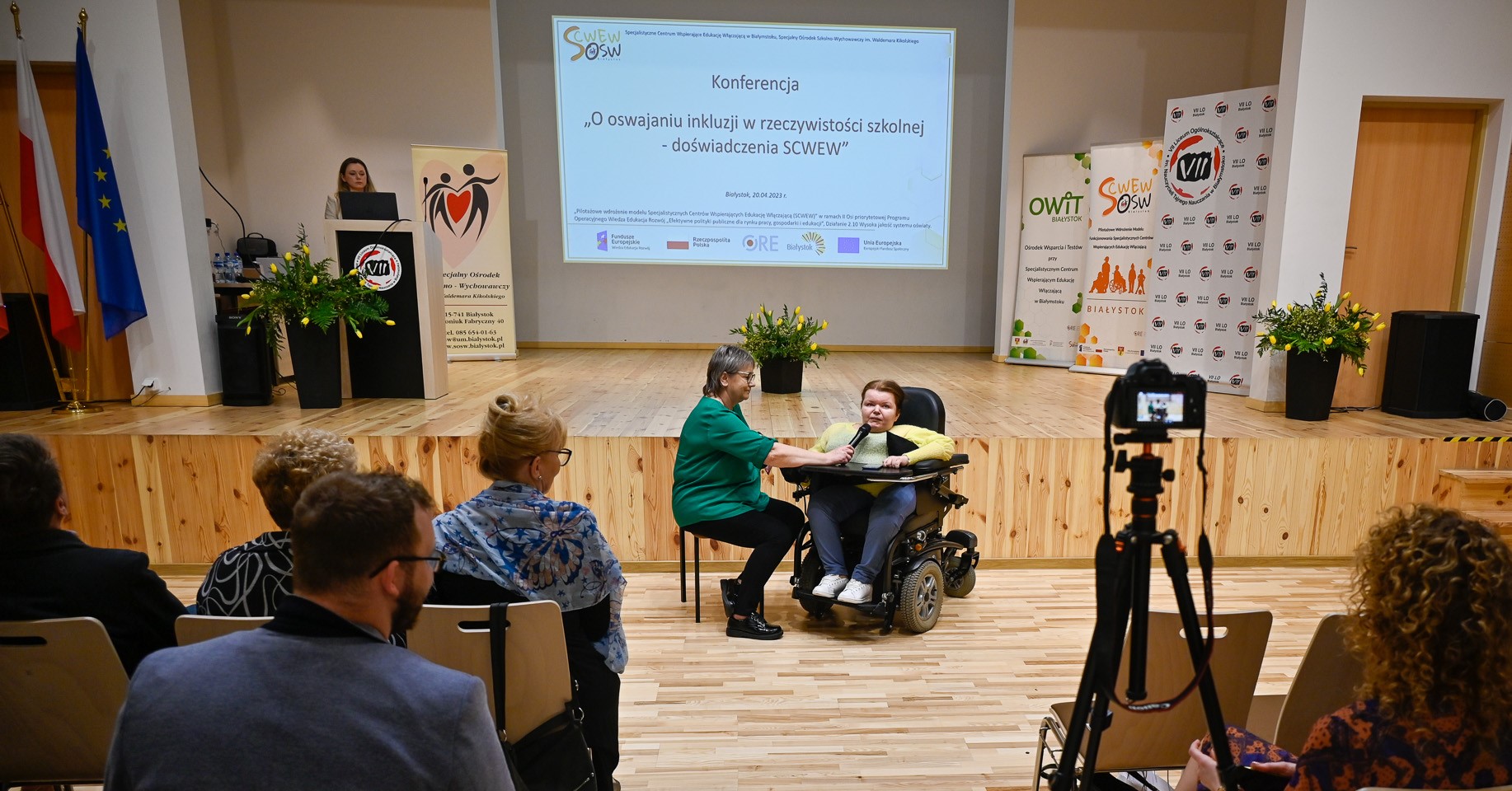 Konferencja pn. „O oswajaniu inkluzji w rzeczywistości szkolnej – doświadczenia SCWEW miała na celu ukazanie efektów działań realizowanych od lipca 2021 roku w placówkach oświatowych w Białymstoku w ramach projektu "Pilotażowe wdrożenie modelu Specjalistycznych Centrów Wspierających Edukację Włączającą (SCWEW)" realizowanego w ramach Programu Operacyjnego Wiedza Edukacja Rozwój ,,Efektywne polityki publiczne dla rynku pracy, gospodarki i edukacji”.