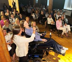 Następnie wystąpiła Joanna Gierz, która podzieliła się swoją historią i doświadczeniem. Jako osoba poruszająca się na wózku podkreśliła wagę rozwiązań zapewniających dostępność w przestrzeni publicznej, w zapobieganiu izolacji i wyrównywaniu szans. Opisała także swoje doświadczenia z programem „Samodzielność – Aktywność – Mobilność” realizowanym przez PFRON, którego wsparciem została objęta.