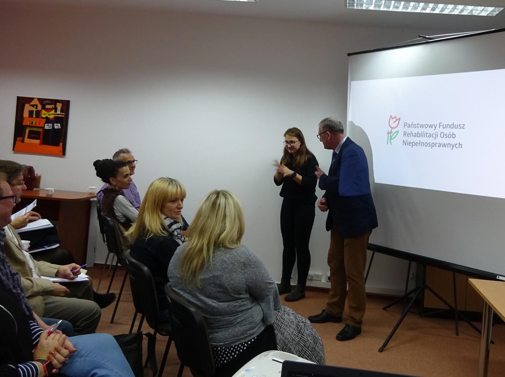 W siedzibie Warmińsko-Mazurskiego Oddziału Państwowego Funduszu Rehabilitacji Osób Niepełnosprawnych 23 października 2018 r. odbyły się konsultacje dla organizacji pozarządowych dotyczące warunków konkursu nr 1/2018 pn. „SZANSA-ROZWÓJ-SAMODZIELNOŚĆ” w ramach art. 36 ustawy o rehabilitacji zawodowej i społecznej oraz zatrudnianiu osób niepełnosprawnych. W spotkaniu uczestniczyły 24 osoby z 10 stowarzyszeń z województwa warmińsko-mazurskiego działających na rzecz osób z niepełnosprawnością. Pracownicy Oddziału Funduszu przedstawili prezentacje dotyczące zasad ogłoszenia o konkursie, jak też zmian w „Zasadach wspierania realizacji zadań z zakresu rehabilitacji zawodowej i społecznej osób niepełnosprawnych (…)” wprowadzonych w 2018 roku, a wynikających z konsultacji społecznych przeprowadzonych z organizacjami pozarządowymi, a także ze zmian w przepisach powszechnie obowiązujących (m.in. RODO). Prezenterzy odpowiadali także na pytania zadane przez uczestników spotkania dotyczące sposobu wypełniania wniosków, jak też realizacji umów i ich rozliczania. Spotkanie było tłumaczone na język migowy.