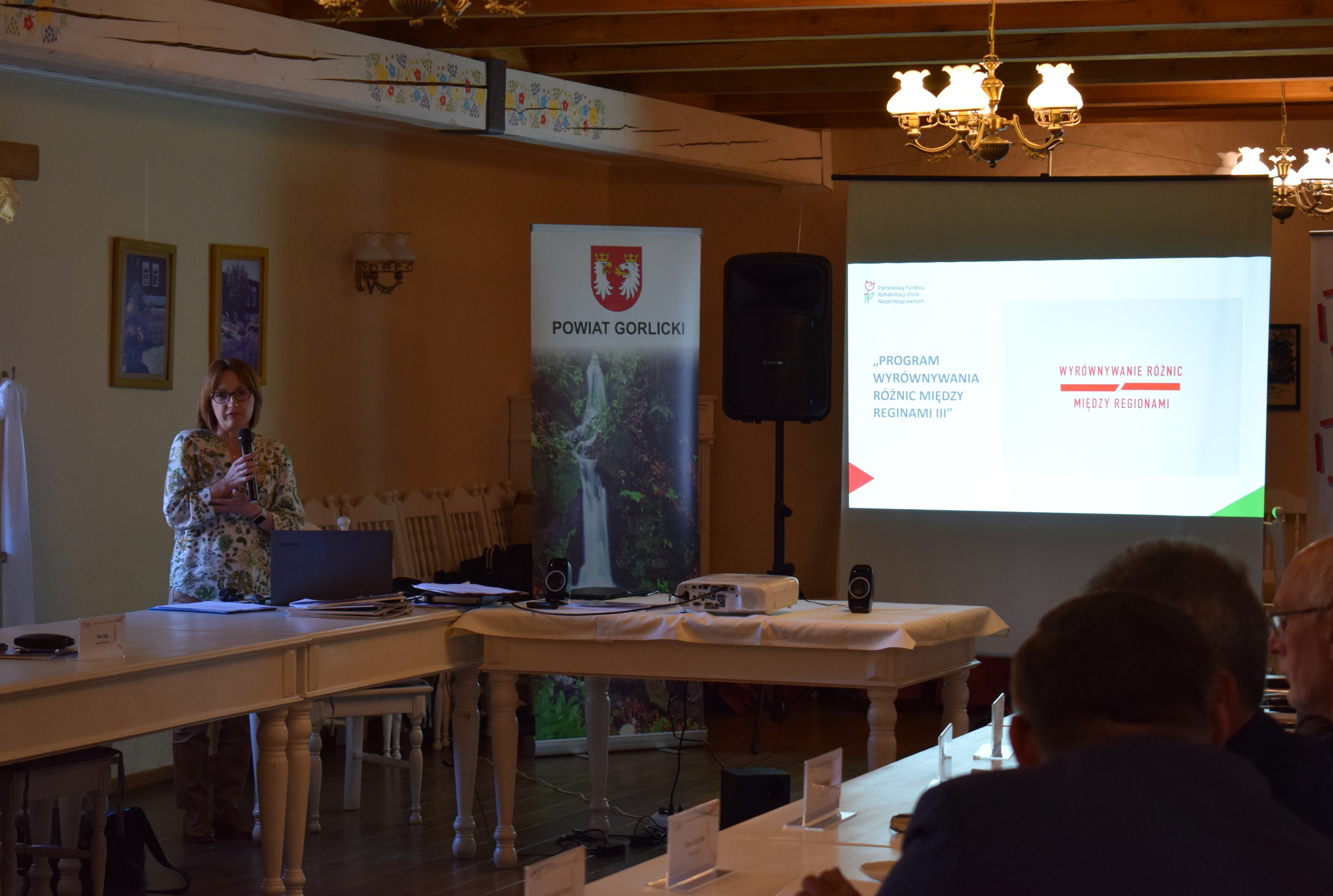 Bogusława Słońska szczegółowo omówiła realizację „Programu wyrównywania różnic między regionami III”, którego głównym celem strategicznym jest wyrównywanie szans oraz zwiększenie dostępu osób niepełnosprawnych do rehabilitacji zawodowej i społecznej ze szczególnym uwzględnieniem osób zamieszkujących regiony słabo rozwinięte gospodarczo i społecznie.