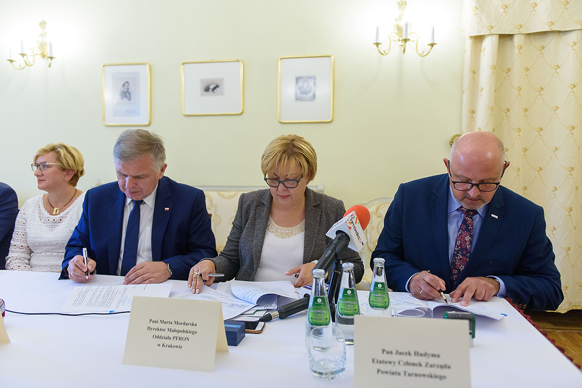 Dzisiejsze spotkanie Marty Mordarskiej – dyrektor Małopolskiego Oddziału PFRON z Romanem Łucarzem – Starostą Tarnowski oraz Jackiem Hudymą – Etatowym Członkiem Zarządu Powiatu Tarnowskiego odbyło się w Centrum Paderewskiego w Kąśnej Dolnej. Umowy zawarte zostały w obecności Wiceminister Zdrowia – Józefy Szczurek - Żelazko oraz Józefa Gawrona – Wicewojewody Małopolskiego i Marka Karasia – Wójta Gminy Rzepiennik Strzyżewski.