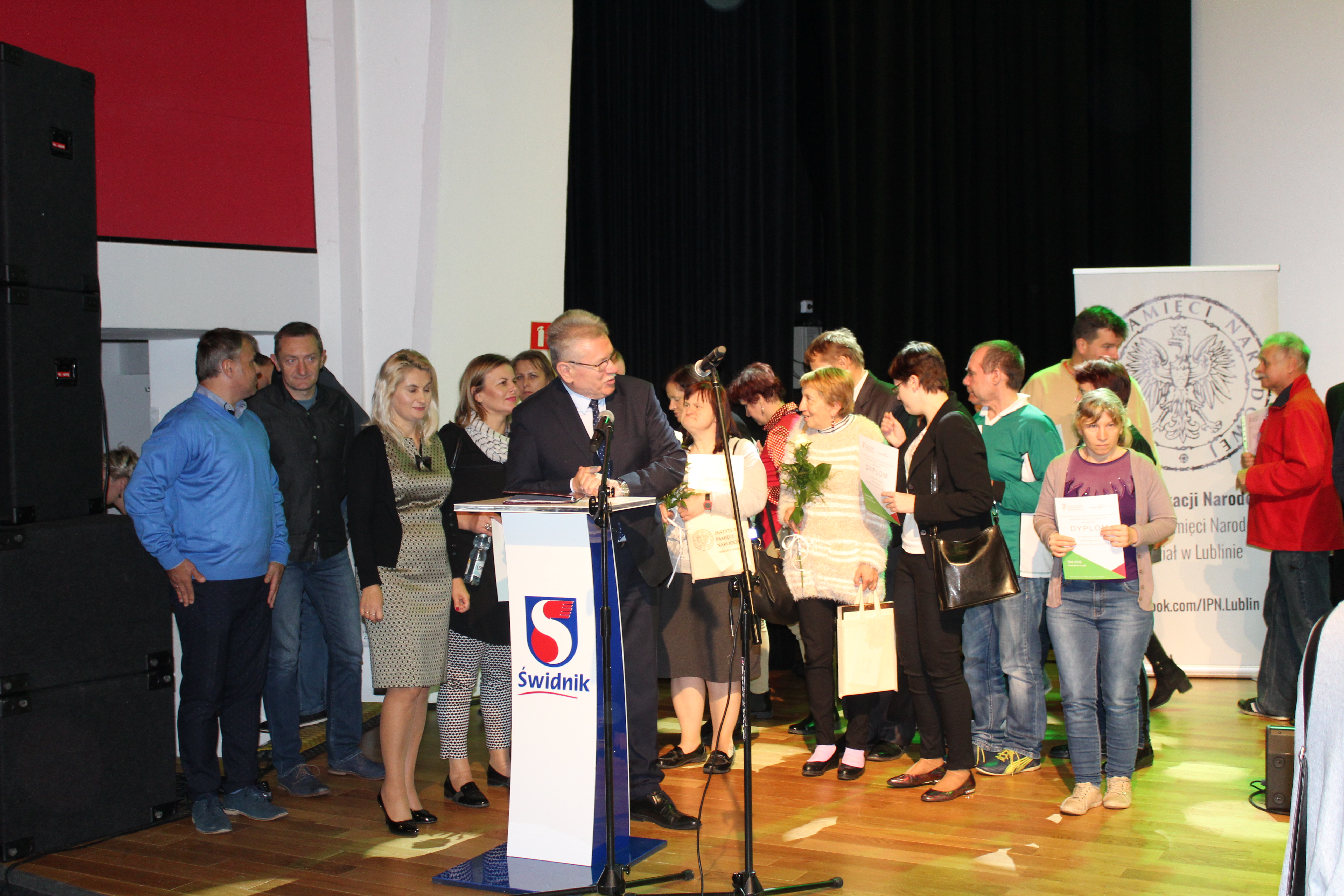 W spotkaniu wzięło udział ponad 200 osób w tym m.in.: Waldemar Jakson Burmistrz Miasta Świdnik, Janusz Królik Przewodniczący Rady Miasta Świdnik, dr hab. Tomasz Panfil Naczelnik Oddziałowego Biura Edukacji Narodowej w Lublinie, Magdalena Śladecka pracownik Oddziału Instytutu Pamięci Narodowej w Lublinie, Adam Żurek Dyrektor Miejskiego Ośrodka Kultury w Świdniku, Dorota Zybała Prezes Stowarzyszenie Integracji Społecznej w Świdniku oraz uczestnicy konkursu wraz z opiekunami. Dla zgromadzonych gości wystąpili: Kapela Drewutnia oraz Dariusz Tokarzewski. Instytut Pamięci Narodowej w Lublinie dodatkowo ufundował upominki dla laureatów oraz członków komisji opiniującej prace na etapie wojewódzkim.