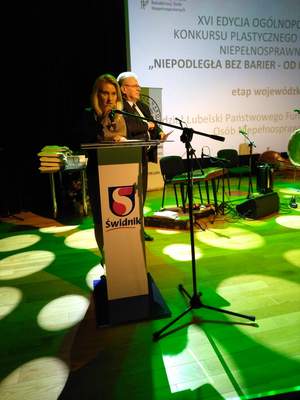 Uroczyste wręczenie dyplomów i nagród dla uczestników etapu wojewódzkiego ogólnopolskiego konkursu plastycznego „Sztuka Osób Niepełnosprawnych” odbyło się 4 października 2018 r. w Miejskim Ośrodku Kultury w Świdniku. Temat XVI edycji konkursu brzmiał „Niepodległa bez barier od morza do Tatr”.