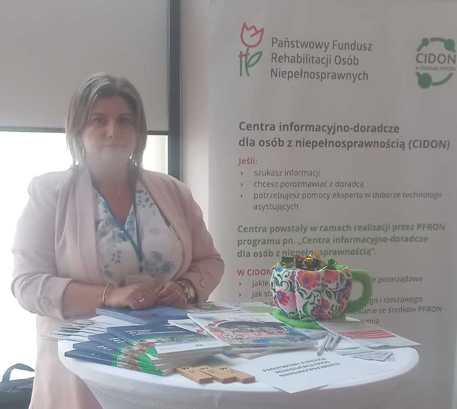Stoisko informacyjne Oddziału Lubelskiego PFRON cieszyło się dużym zainteresowaniem. Pracownicy udzielali informacji na temat wsparcia i przywilejów przysługujących osobom z niepełnosprawnościami ze środków PFRON, w tym form aktywizacji zawodowej i społecznej.