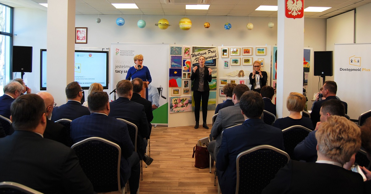 - Państwowy Fundusz Rehabilitacji Osób Niepełnosprawnych realizując swoją misję wpisuje się w program Dostępność Plus –podczas swojego wystąpienia podkreśliła znaczenie pracy Funduszu Marlena Maląg – Prezes Zarządu PFRON. Adam Hamryszczak - Podsekretarz Stanu w Ministerstwie Inwestycji i Rozwoju oraz Przemysław Herman – Zastępca Dyrektora Departamentu Europejskiego Funduszu Społecznego powiedzieli o założeniach programu Rządowego Dostępność Plus oraz o stanie jego realizacji.