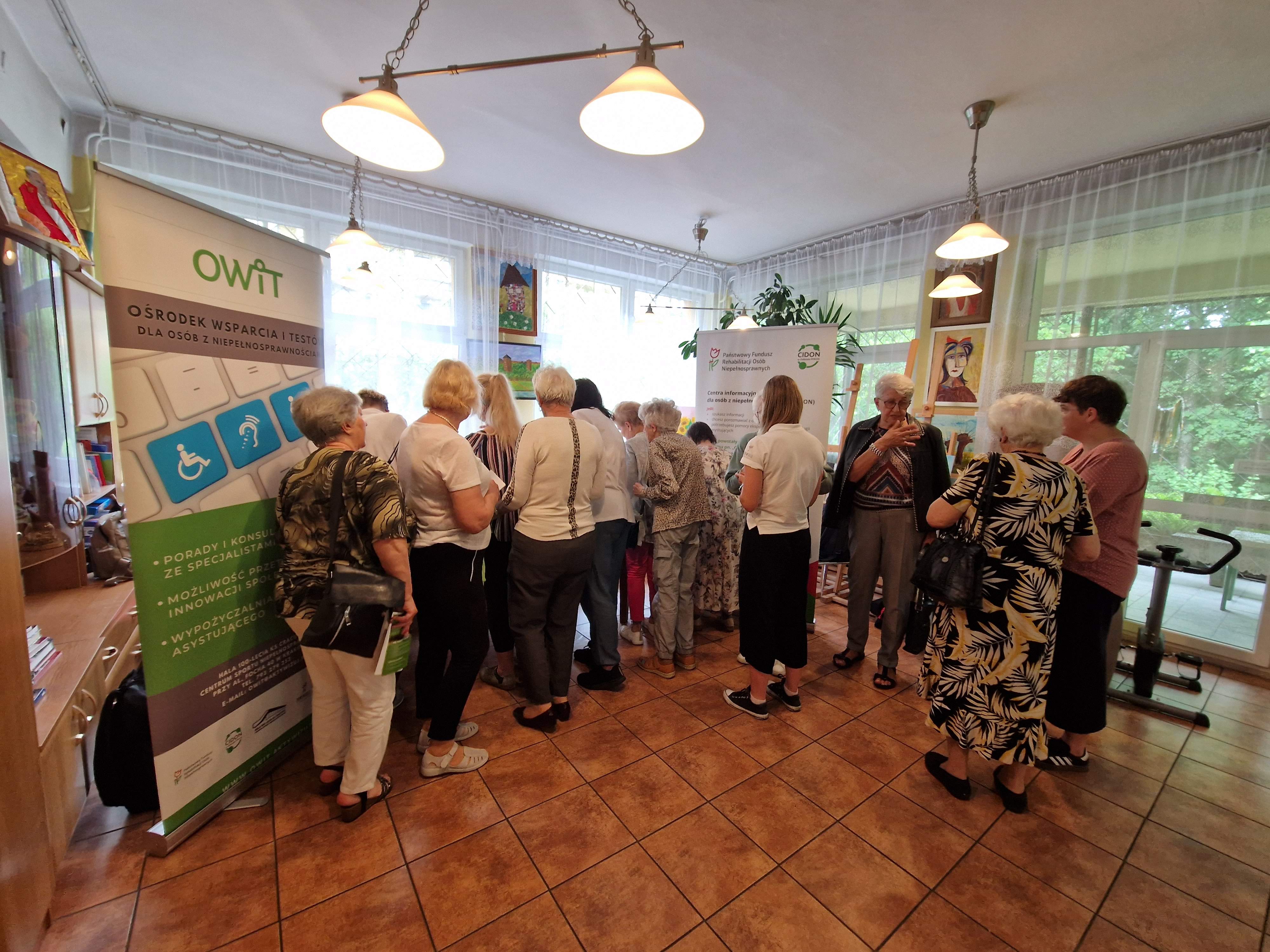 Do udziału w tym spotkaniu zaprosiliśmy także małopolski Ośrodek Wsparcia i Testów (OWiT) utworzony przez Fundację „Znowu w biegu”, z którym na co dzień współpracujemy. Stoisko OWiT także cieszyło się ogromna popularnością. Seniorzy mogli przetestować urządzenia m.in.: mówiące ciśnieniomierze, mówiące zegarki, Czytaki Plus do słuchania audiobooków oraz lupy. Wszyscy seniorzy otrzymali pakiety ulotek z kontaktem do PFRON i OWiT oraz informatory.