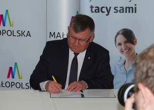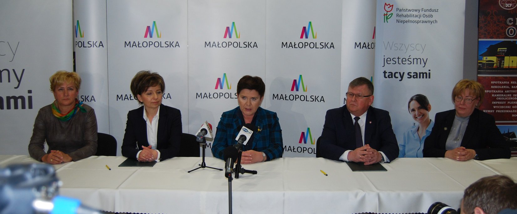 Witold Kozłowski, Marszałek województwa małopolskiego i Marlena Maląg, Prezes Zarządu Państwowego Funduszu Rehabilitacji Osób Niepełnosprawnych - w obecności Wicepremier Beaty Szydło – w dniu wczorajszym w Starym Sączu podpisali porozumienie dotyczące realizacji w Małopolsce programu „Partnerstwo dla osób z niepełnosprawnościami”. Porozumienie zostało zawarte w celu współfinansowania projektów organizacji pozarządowych wyłonionych do dofinansowania w drodze konkursów organizowanych przez Zarząd Województwa w ramach Regionalnego Programu Operacyjnego. Do tej pory projekt był realizowany przez województwo podkarpackie oraz świętokrzyskie.