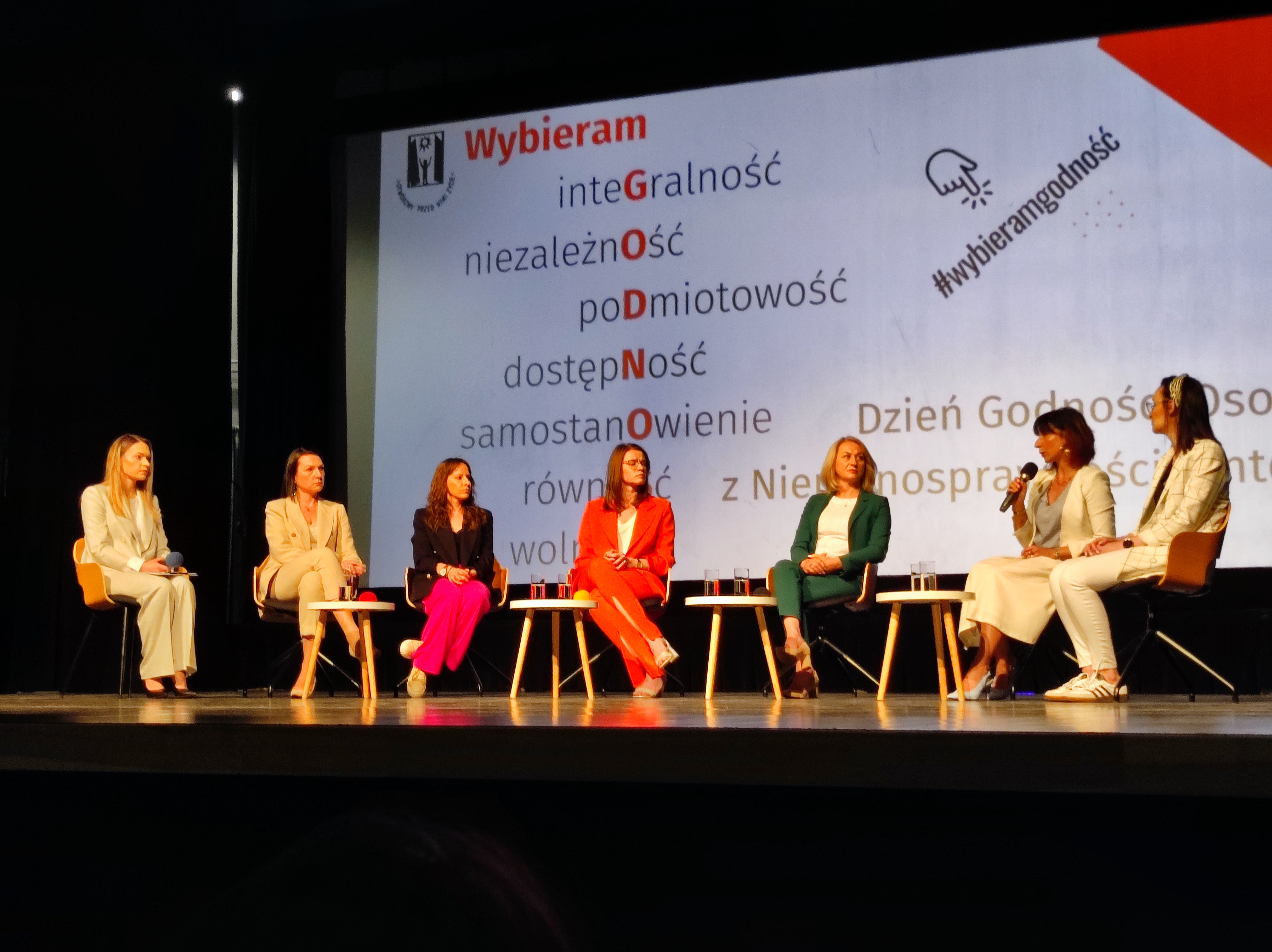Kolejnym etapem Dnia Godności były występy artystyczne oraz panel dyskusyjny, w którym udział wzięła Iwona Podkowa-Nowak, Specjalista ds. CIDON Oddziału Lubelskiego PFRON. Pani Iwona opowiedziała o zasadach i warunkach skorzystania z „Wypożyczalni Technologii Wspomagających dla Osób z Niepełnosprawnością”.