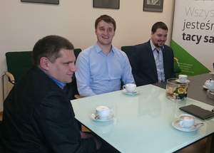 Wczorajsze spotkanie z przedstawicielami Stowarzyszenia Nie Widzę Przeszkód zaowocowało planami współpracy i wsparcia wyjątkowych wydarzeń o charakterze międzynarodowym. Z Martą Mordarską – dyrektor Małopolskiego Oddziału PFRON spotkali się zawodnicy krakowskiej drużyny Blind Football'u: Piotr Niesyczyński – kierownik drużyny, Marcin Ryszka – manager i Martin Jung. Rozmowy dotyczyły organizacji turnieju IBSA Euro Challenge, który jest ważną imprezą integracyjną.