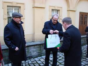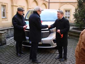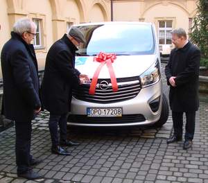 Przekazanie samochodu zakupionego dla podopiecznych Domu Pomocy Społecznej odbyło się 22 stycznia 2018 r. Pan Ryszard Ciupek - dyrektor Domu Pomocy Społecznej w Prószkowie odebrał klucze z rąk pana Henryka Lakwy - Starosty Opolskiego i pana Łukasza Żmudy - Dyrektora Oddziału Opolskiego Państwowego Funduszu Rehabilitacji Osób Niepełnosprawnych.
