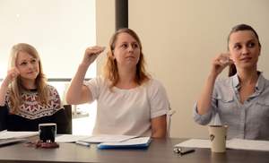 Od kwietnia do czerwca b.r. pracownicy Małopolskiego Centrum Kultury SOKÓŁ z Nowego Sącza uczestniczyli w kursie polskiego języka migowego (PJM) na poziomie podstawowym A 1. Gratulacje w związku z ukończeniem kursu uczestnicy otrzymali z rąk Marty Mordarskiej – dyrektora Oddziału Małopolskiego PFRON, Adama Stromidło – prezesa Małopolskiego Oddziału PZG -wykładowcy, Tomasza Włodarskiego – zastępcy dyrektora Małopolskiego Instytutu Kultury oraz Antoniego Malczaka – dyrektora Małopolskiego Centrum Kultury SOKÓŁ.