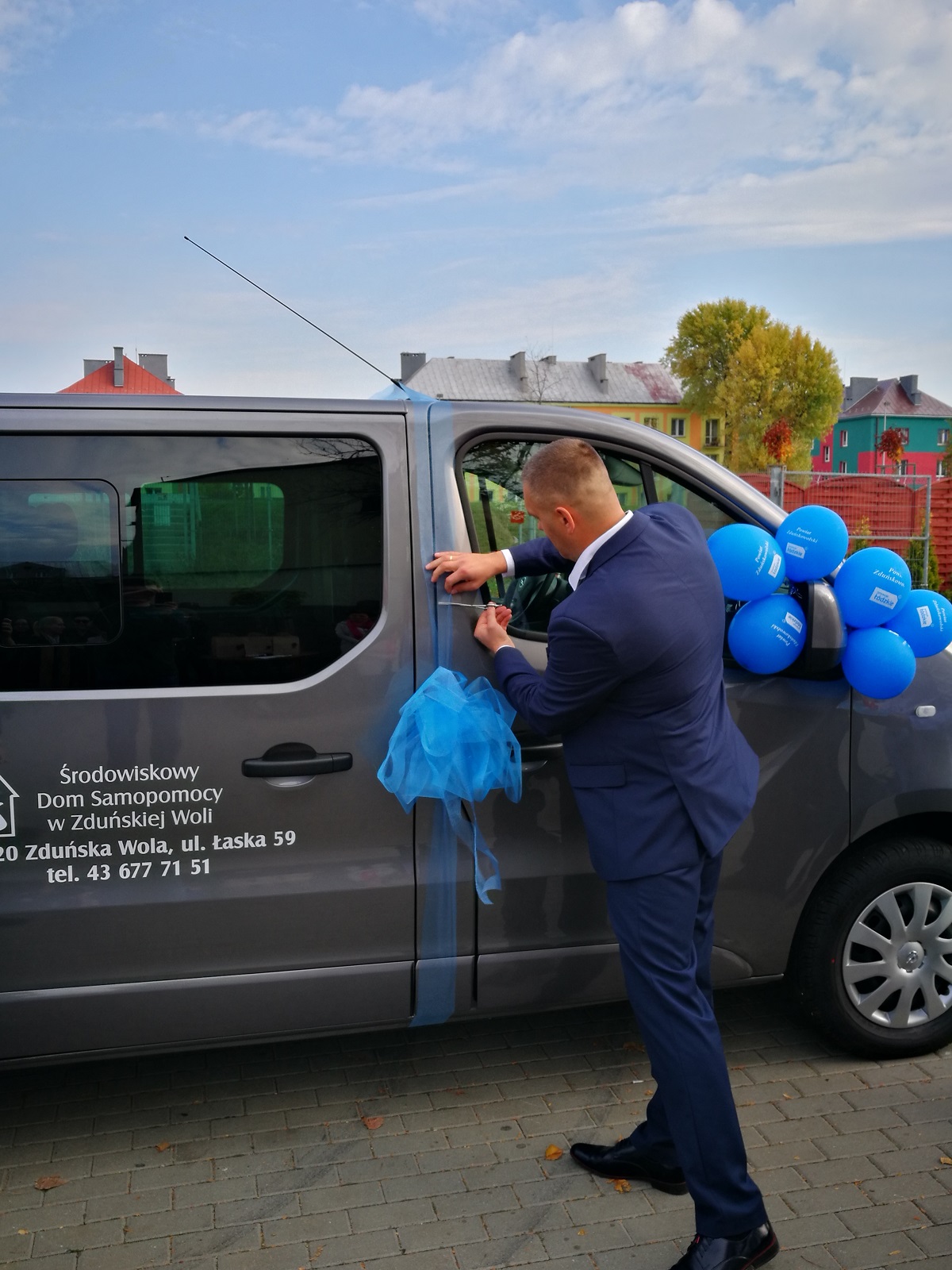 W dniu 18 października br. na terenie placówki odbyło się oficjalne przekazanie samochodu w obecności władz lokalnych, przedstawiciela regionalnego Funduszu, zaprzyjaźnionych osób oraz samych podopiecznych. Placówka dostała nowego Opla Vivaro. Jest to 9-osobowy mikrobus przystosowany do przewozu osób niepełnosprawnych na wózkach inwalidzkich. Środowiskowy Dom Samopomocy prowadzi działalność dla 35 podopiecznych przewlekle psychicznie chorych, niepełnosprawnych intelektualnie. Wśród obecnych uczestników są osoby niepełnosprawne ruchowo poruszające się na wózku inwalidzkim oraz korzystające ze sprzętu i zaopatrzenia ortopedycznego. Dotychczas do przewozu podopiecznych zamieszkałych na terenach wiejskich, placówka korzystała z samochodu Powiatowego Centrum Pomocy Rodzinie w Zduńskiej Woli.