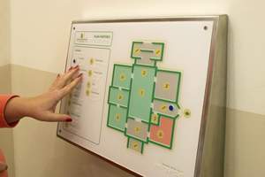 - tabliczki informacyjne z oznaczeniem przestrzeni w piśmie wypukłym Braille’a;