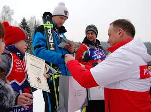 - Dużo trenowałem na Jaworkach. Naprawdę nie spodziewałem się dwóch złotych medali. Skoczkom się nie udało, ale mi się udało. Chyba nadaję się na sportowca, jednak moim marzeniem jest dobrze pracować – powiedział bardzo poruszony swoim drugim zwycięstwem Łukasz Frączek. Zawodnik, swój pierwszy złoty medal zdobył w ubiegłym roku podczas Jubileuszowego Memoriału w Rabce-Zdroju. Drugie miejsce wywalczył Antoni Wiercioch (Fundacja HANDICAP Zakopane), medalista Światowych Zimowych Igrzysk Olimpiad Specjalnych - Austria 2017. Miejsce trzecie na podium zajął Rafał Świczkowski – Fundacja HANDICAP Zakopane. Wszyscy zawodnicy otrzymali gratulacje z rąk Poseł Anny Paluch - organizatorki Memoriału oraz uczestniczących w wydarzeniu gości m.in. Jarosława Stawiarskiego - Wiceministra Sportu i Turystyki, Jana Hamerskiego – Senatora RP oraz Ewy Przybyło - Burmistrza Rabki-Zdroju.