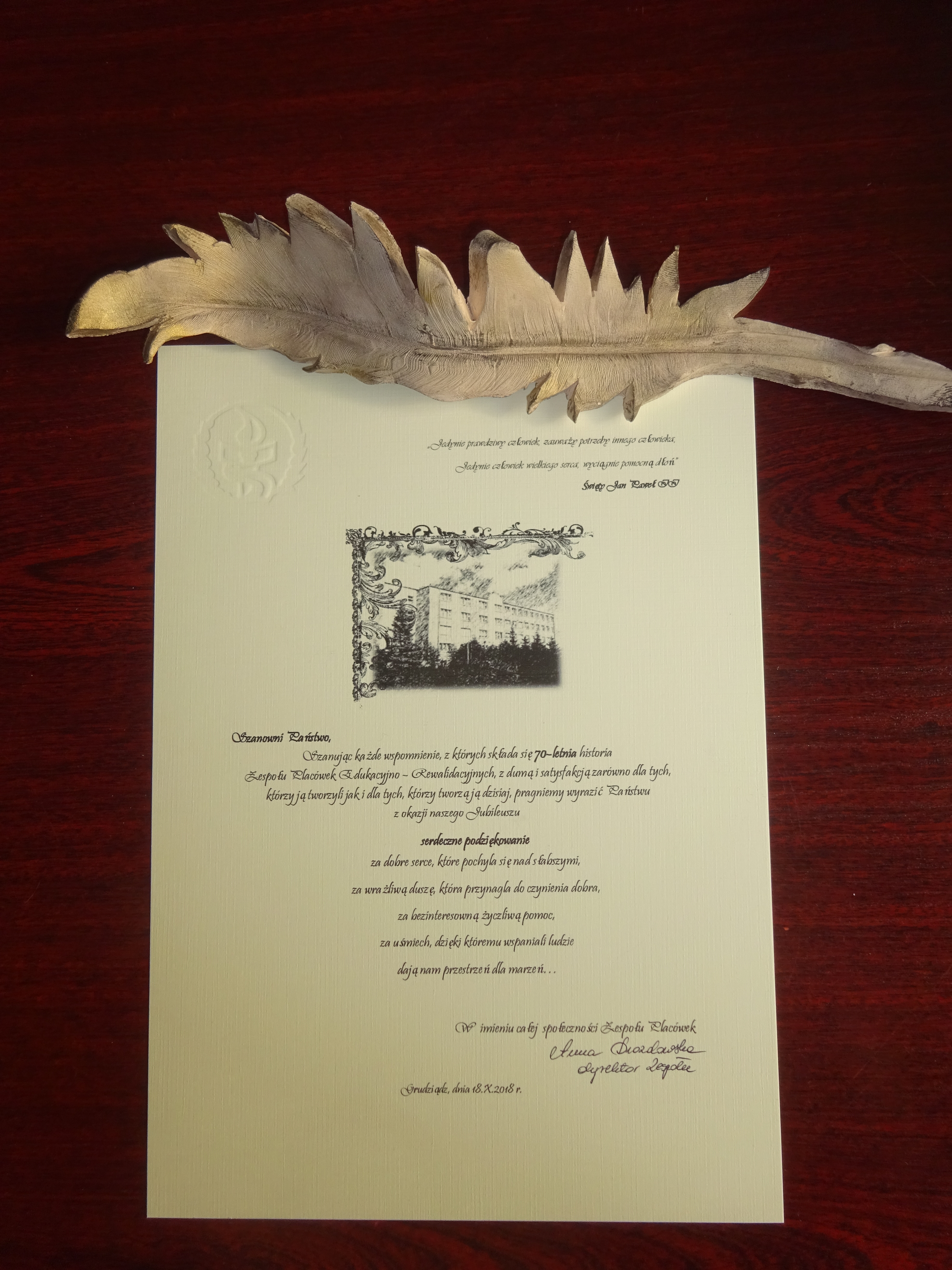 Dyrekcji, pracownikom, uczniom i rodzicom serdecznie gratulujemy tak pięknego jubileuszu jednocześnie życząc dalszych sukcesów w każdym aspekcie życia.
