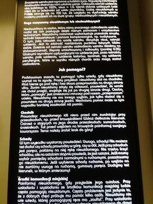 – Podróż po tym świecie zaczyna się w tak zwanej strefie zero – panuje tam ciemność absolutna. W tym pomieszczeniu nie ma nic. Służy temu, aby się oswoić z nowym środowiskiem – tłumaczy Małgorzata Szumowska – dyrektor wystawy. Organizatorzy podzielili ją na część widzialną i niewidzialną. W tej pierwszej poznamy historię alfabetu Braille'a, zapoznamy się z udźwiękowionymi przedmiotami codziennego użytku, zmierzymy się z układaniem puzzli z zawiązanymi oczami, poznamy zasady mądrego i życzliwego udzielania wsparcia osobie niewidomej.