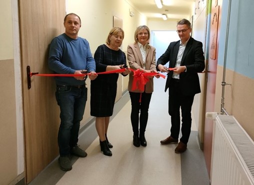 W dniu 18 listopada 2025 roku w Zespole Placówek Szkolno-Wychowawczo-Rewalidacyjnych w Cudzynowicach odbył się odbiór robót dofinansowanych ze środków PFRON w ramach Obszaru B „Programu wyrównywania różnic między regionami III” – Projekt pn.: ,,Likwidacja barier w zakresie umożliwienia osobom niepełnosprawnym poruszania się poprzez zakup i montaż antypoślizgowej wykładziny w budynku Zespołu Placówek Szkolno- Wychowawczo- Rewalidacyjnych w Cudzynowicach”. W uroczystości wzięli udział: dyrektor ZPSWR Jacek Sambór, dyrektor PCPR w Kazimierzy Wielkiej Bożena Pytel, przedstawiciel Oddziału Świętokrzyskiego PFRON Dominika Tosnowiec oraz wykonawca Daniel Czajka, którzy symbolicznie przecinając wstęgę oddali do użytkowania wykładzinę antypoślizgową zamontowaną w ciągach komunikacyjnych na korytarzach placówki. Zapewni ona bezpieczne i swobodne poruszanie się uczniów z niepełnosprawnościami.Całkowita wartość realizacji zadania wyniosła 79.900,00 zł, w tym dofinansowanie ze środków PFRON w wysokości 42.754,80 zł.