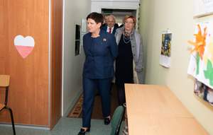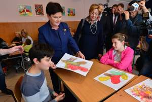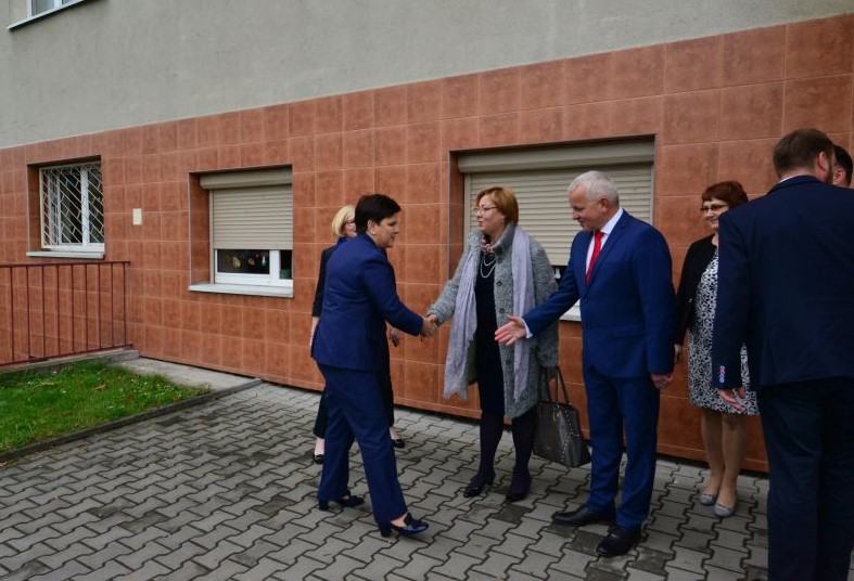 Premier Beata Szydło oraz Marta Mordarska – dyrektor Małopolskiego Oddziału PFRON spotkały się z dziećmi, ich rodzinami, nauczycielami i dyrekcją Specjalnego Ośrodka Szkolno – Wychowawczego przy ul. Broniewskiego w Nowym Sączu. Wizyta związana była z obserwacją zajęć realizowanych w ramach programu rządowego „Za życiem”. W ubiegłym roku Ośrodek był jedną z dwóch placówek w Polsce, które zrealizowały te zajęcia w 100%.