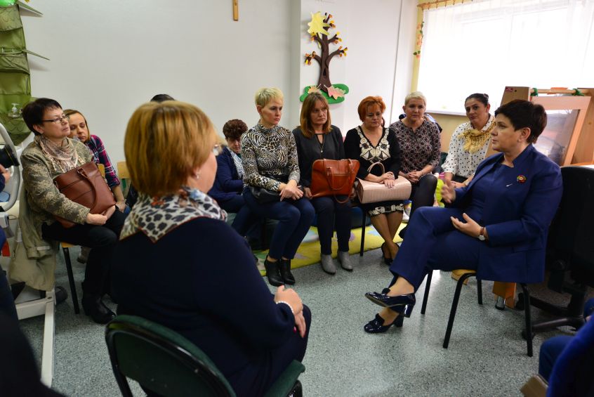 Podczas spotkania, które odbyło się w dniu 26 października br. Premier Beata Szydło rozmawiała z rodzicami o wykorzystywaniu programu „Za życiem”. Premier podkreślała, że rząd dąży do jak najlepszego dostosowania oferty do potrzeb rodzin wychowujących dzieci z niepełnosprawnościami. Opiekunowie i rodzice podopiecznych Ośrodka zaznaczyli, że pomoc jaką otrzymują w ostatnim okresie od rządu, jest coraz większa, dotyczy to w dużej mierze rehabilitacji oraz zajęć dodatkowych.
