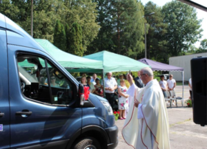 Uroczystość rozpoczęła się mszą świętą polową, którą odprawił ksiądz proboszcz Parafii pw. Ducha Świętego w Poniatowej, w trakcie której poświęcił pojazd. W trakcie Mszy Świętej uczestniczka warsztatu zaśpiewała pieśni.