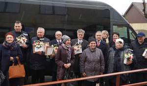 W uroczystości przekazania autobusu wzięli udział m.in.: senator Krzysztof Słoń, przedstawiciele Zarządu Powiatu Skarżyskiego - starosta Artur Berus, wicestarosta Anna Leżańska, członkowie: Katarzyna Bilska i Adam Ciok, dyrektor świętokrzyskiego oddziału PFRON Andrzej Michalski, wójt gminy Bliżyn Mariusz Walachnia, dyrektor PCPR w Skarżysku-Kamiennej Paweł Perkowski, prezes Stowarzyszenia Rodzin i Przyjaciół Osób Niepełnosprawnych Danuta Janiec z zarządem, kierownik WTZ Małgorzata Pączek, oraz kierownik Zespołu ds. Polityki Społecznej i Senioralnej starostwa powiatowego Edyta Ucińska. Nowy samochód poświęcił o. Janusz Siwicki, proboszcz Parafii pw. Niepokalanego Poczęcia NMP w Skarżysku-Kamiennej. Danuta Janiec, prezes Stowarzyszenia Rodzin i Przyjaciół Osób Niepełnosprawnych przypomniała, że WTZ istnieje od 29 lat i nigdy nie miał własnego środka transportu. - Zawsze posiłkowaliśmy się transportem prywatnym i on nam wystarczał. W tej chwili jest taka sytuacja, że aż ośmioro naszych uczestników jeździ na wózkach inwalidzkich – mówiła, dziękując wszystkim za pomoc w zakupie autobusu. Starosta skarżyski Artur Berus także dziękował: - Jest mi niezmiernie miło, że wspólnie z całym Zarządem Powiatu możemy dzisiaj uczestniczyć w tak pięknej uroczystości. Dziękuję za tę dobrą współpracę z Państwowym Funduszem Rehabilitacji Osób Niepełnosprawnych. Rzeczywiście dzisiaj popłynęły kolejne pieniądze do powiatu skarżyskiego - mówił. Z kolei senator Krzysztof Słoń złożył gratulacje na ręce prezes Stowarzyszenia Danucie Janiec za 29 lat pracy na rzecz osób z niepełnosprawnościami, wyrażając swoją radość, że Warsztaty wzbogaciły się dzięki wydatnej pomocy finansowej PFRON o tak wyczekiwany autobus.