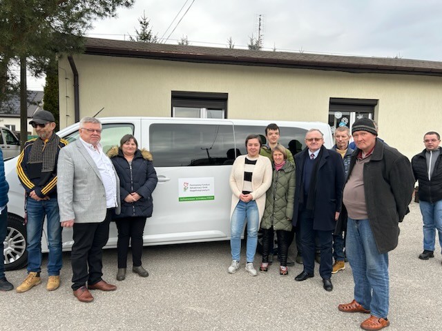 Nowy, komfortowy i bezpieczny, tak w skrócie można określić nowy 9-cio osobowy bus, który 15 lutego br. został oficjalnie przekazany Warsztatowi Terapii Zajęciowej w Pińczowie. W uroczystości wziął udział m.in. dyrektor Oddziału Świętokrzyskiego PFRON Andrzej Michalski. Bus służyć będzie do przewozu osób z niepełnosprawnościami na zajęcia rehabilitacyjne, które odbywają się w Warsztacie. Możliwość dowozu podopiecznych komfortowym i nowoczesnym samochodem podniesie poziom ich bezpieczeństwa. Zakup busa został dofinansowany ze środków PFRON w wysokości 135 tyś. zł. w ramach umowy zawartej w programie „Wyrównywania różnic między regionami III”. Podczas uroczystości kierownik WTZ Roman Szczygieł wręczył dyrektorowi Oddziału Świętokrzyskiego PFRON Andrzejowi Michalskiemu dyplom „Za okazaną życzliwość, za pomocną dłoń, która nieustannie wspiera działalność WTZ”. Powiat Pińczowski łącznie otrzymał dofinansowanie w kwocie 691.875,00zł. na 5 busów.
