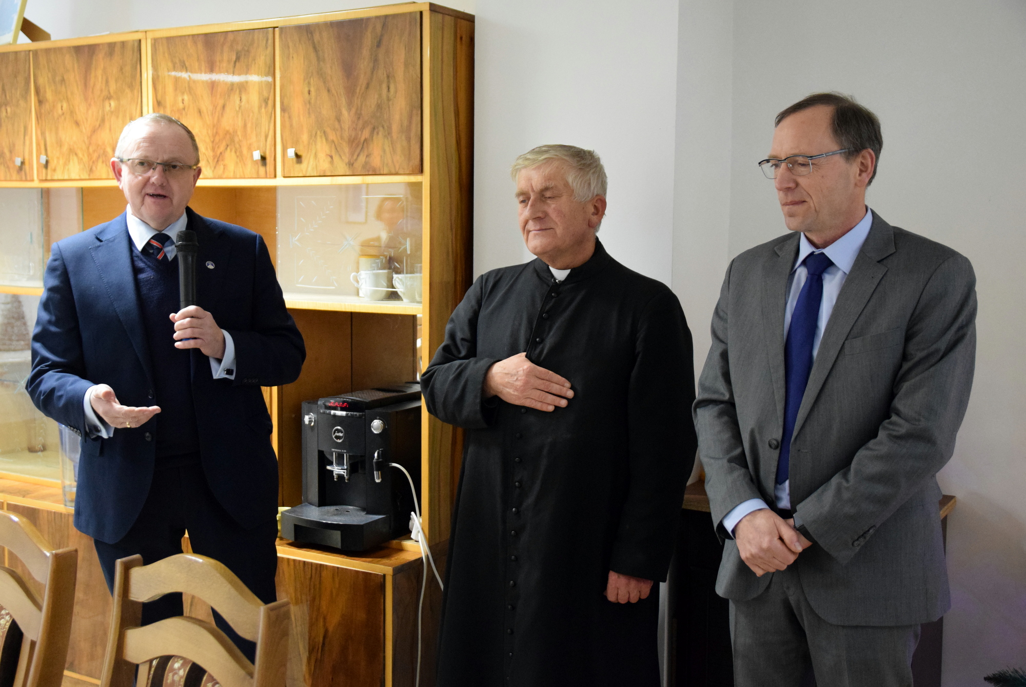 16 grudnia br. odbyła się uroczystość przekazania 9 osobowego mikrobusa dla Warsztatu Terapii Zajęciowej przy parafii rzymsko-katolickiej w Kałkowie-Godowie. Samochód przystosowany jest do przewozu osób z niepełnosprawnościami w tym poruszających się na wózkach inwalidzkich. Oddział Świętokrzyski PFRON dofinansował zakup samochodu kwotą 120 tyś. zł. Środki te pochodziły z programu "Wyrównywania różnic między regionami III". Nowy samochód oferuje komfort podróży i bezpieczeństwo podczas transportu podopiecznych na teren placówki. Wyposażony jest w specjalny podest oraz składaną rampę, która ułatwi kierowcy transport osób poruszających się na wózkach. W uroczystości przekazania busa uczestniczył dyrektor Oddziału Świętokrzyskiego PFRON Andrzej Michalski. Po przekazaniu samochodu odbyło się świąteczne spotkanie z uczestnikami WTZ do wigilijnego stołu zaprosił ks. Kustosz Zbigniew Stanios.