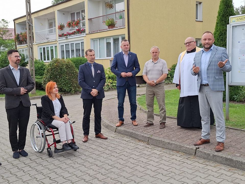 Uroczystego przecięcia wstęgi dokonali Renata Kulik Starosta Łobeski, Krzysztof Gwóźdź Wicestarosta, Mariusz Sira Wójt Gminy Radowo Małe, Grzegorz Woźniak Przewodniczący Rady Gminy Radowo Małe oraz przedstawiciele PFRON.