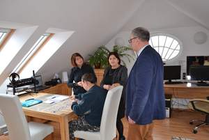 Podczas spotkania Dyrektor Centrum Edukacji Specjalnej przy ŚDS w Olecku Danuta Zaniewska podzieliła się swoim wieloletnim doświadczeniem, które zdobyła prowadząc placówkę. Oprowadziła również gości po pracowniach, dzięki czemu można było porozmawiać z podopiecznymi oraz pracownikami ŚDS w Olecku.