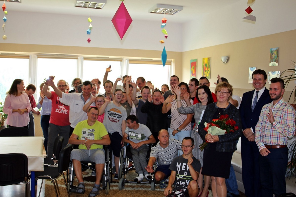 Marta Mordarska-dyrektor małopolskiego Oddziału PFRON w ubiegły piątek, 14 września b.r., gościła w Środowiskowym Domu Samopomocy w Krynicy-Zdroju. Na ręce Dariusza Reśko, burmistrza Krynicy, wręczyła promesę dotyczącą dofinansowania do zakupu nowego pojazdu dla placówki. Kwota 80 000,00 zł ze środków Państwowego Funduszu została przekazana na mocy umowy zawartej w ramach Programu Wyrównywania Różnic Między Regionami III. Dzięki dofinansowaniu możliwy będzie zakup 9-cio osobowego mikrobusu przystosowanego do przewozu osób z niepełnosprawnością.