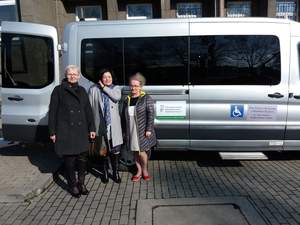 W dniu 06 marca 2019 r. Dyrektor Domu Pomocy Społecznej Pani Barbara Jambor oraz pracownicy Oddziału Śląskiego Państwowego Funduszu Rehabilitacji Osób Niepełnosprawnych odebrali nowy samochód do przewozu osób niepełnosprawnych dofinansowany ze środków PFRON w wysokości 80 000,00 zł. W trakcie wizji zaprezentowano walory nowego pojazdu oraz zademonstrowano sposób działania rampy wjazdowej.