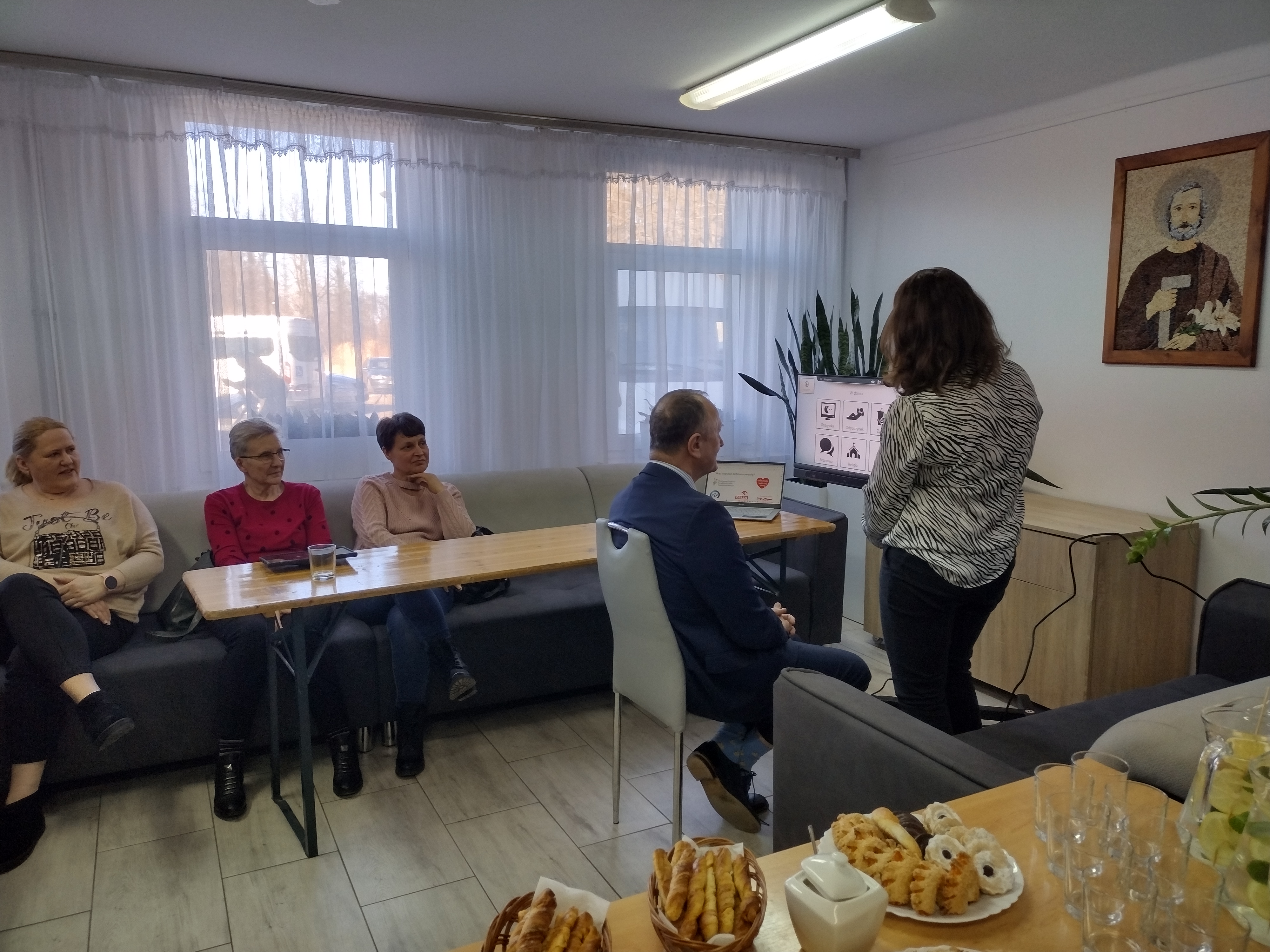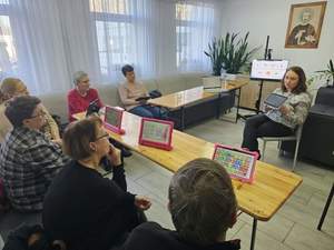 16 lutego br. rozpoczęto w Warsztacie Terapii Zajęciowej w Oleszycach cykl szkoleń z alternatywnych form komunikacji. Szkolenie przeprowadziła neurologopeda Pani Katarzyna Milczanowska. Odbiorcami szkolenia byli rodzice/opiekunowie osób z niepełnosprawnościami (OzN). Wkrótce odbędą się szkolenia kadry WTZ oraz docelowych użytkowników tych urządzeń czyli OzN. Uczestnicy szkolenia poznali sprzęt do komunikacji alternatywnej tj. tablety oraz C-Eye "cyberoko", które jest urządzeniem przy użyciu którego OzN komunikuje się ruchem gałek ocznych. Zakup był możliwy dzięki dofinansowaniu Państwowego Funduszu Rehabilitacji Osób Niepełnosprawnych w Rzeszowie i będzie początkiem nowej jakości w komunikowaniu się osób niemówiących. Na szkoleniu obecny był również Pan Maciej Szymański Dyrektor Oddziału Podkarpackiego PFRON, który osobiście sprawdzał możliwości wykorzystania C-Eye i tabletów wyposażonych w aplikację do AAC (komunikacja alternatywna i wspomagająca).