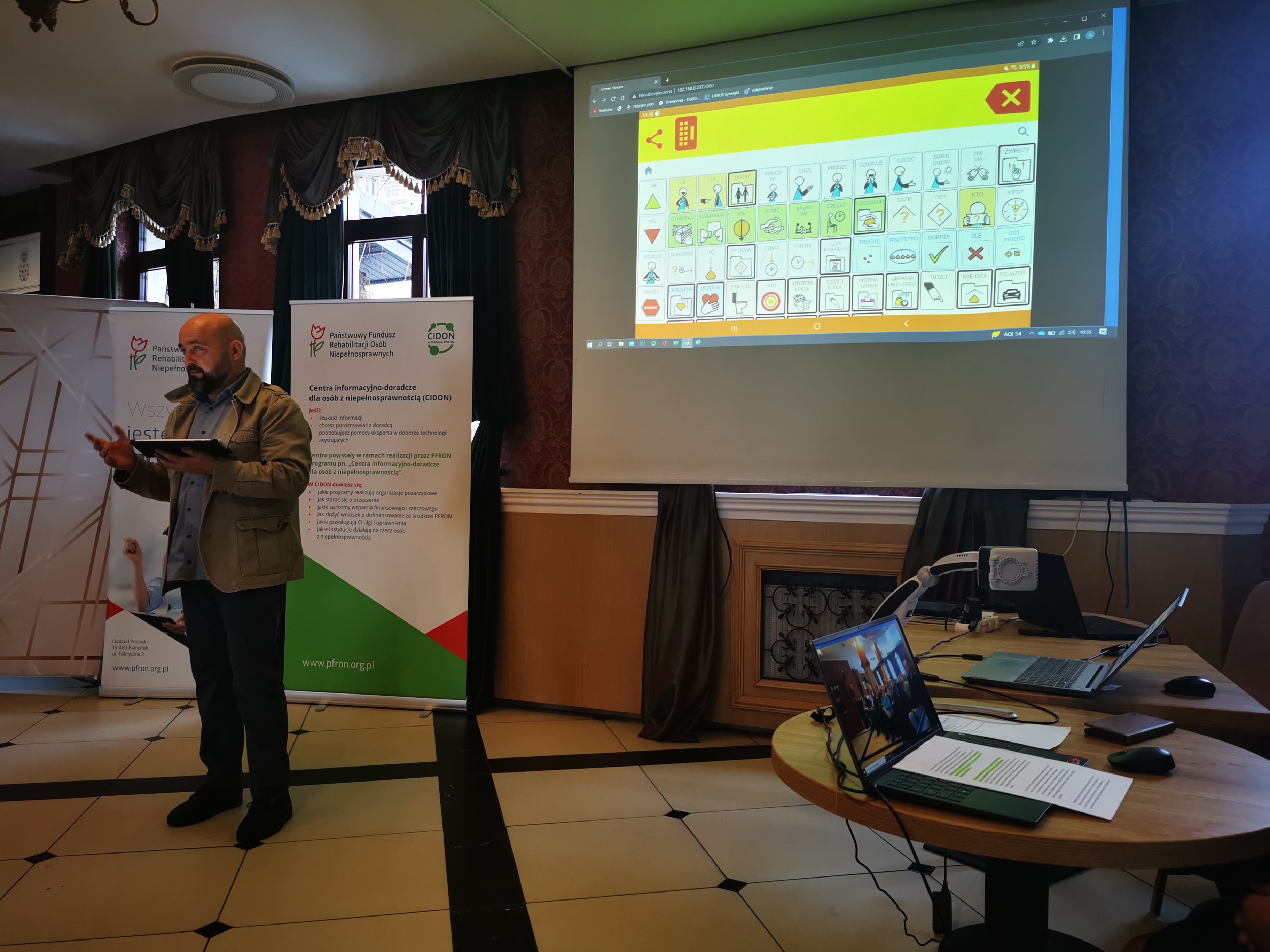 Podczas spotkania pracownicy OWiT zaprezentowali bogaty katalog sprzętów, oprogramowania, posiadanych technologii asystujących i możliwości ich nieodpłatnego testowania i wypożyczania przez osoby z niepełnosprawnością.