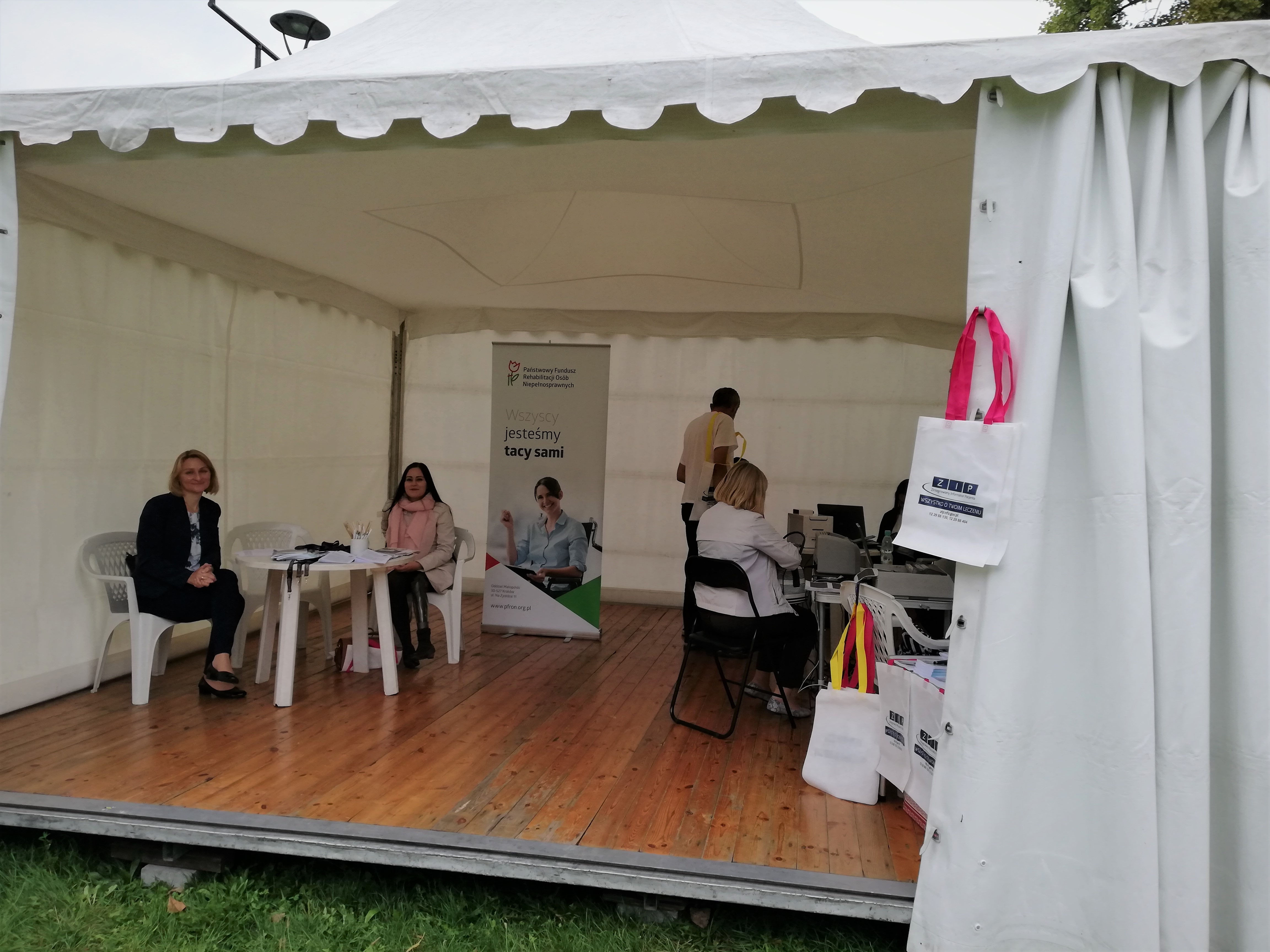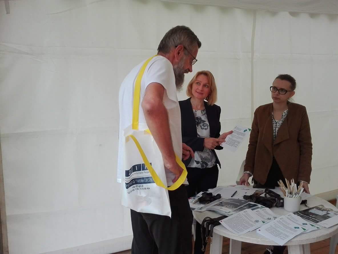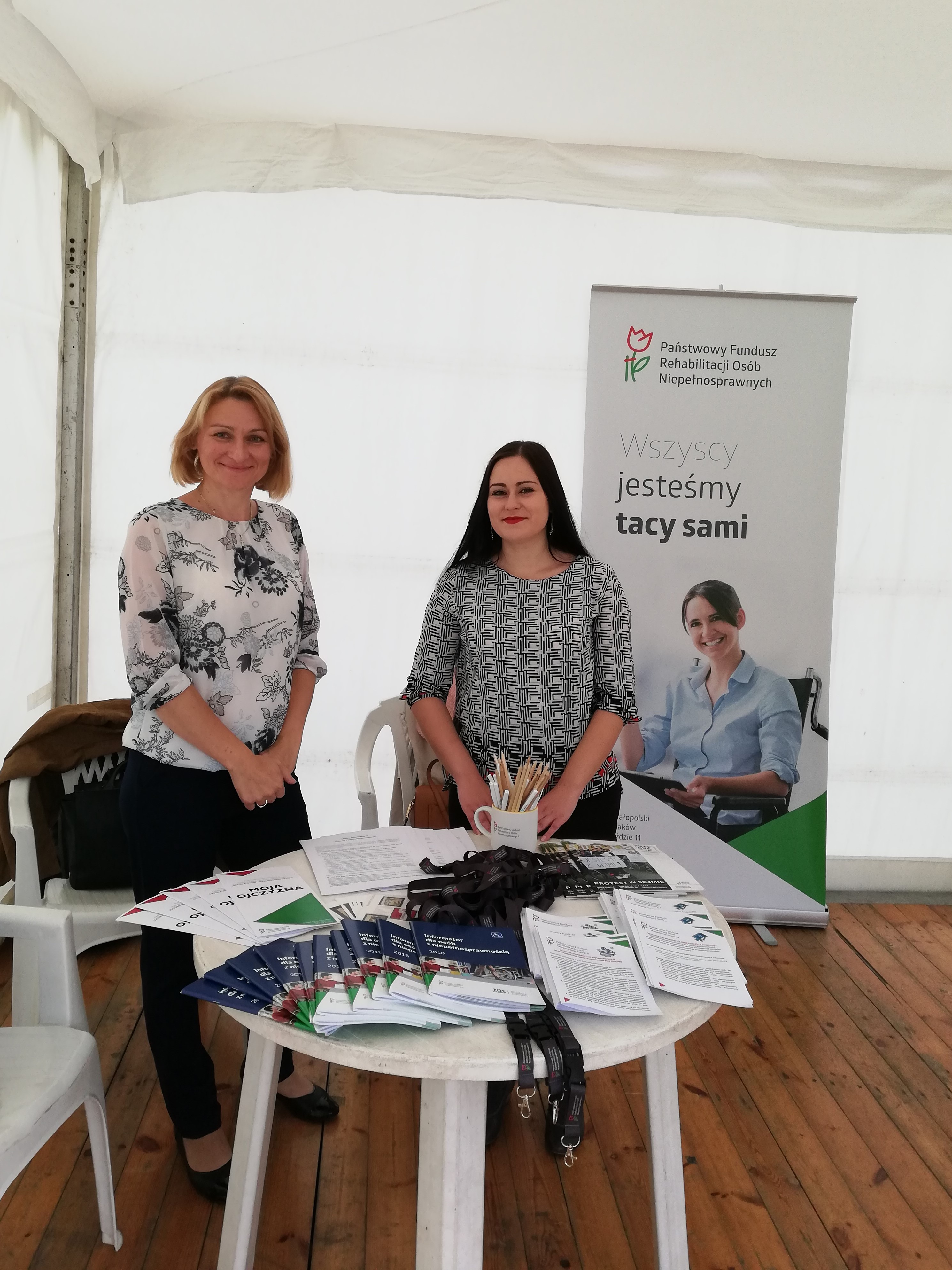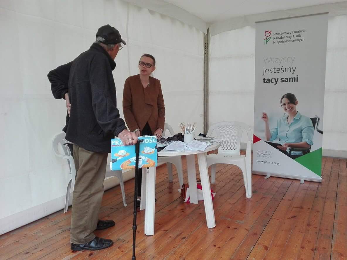 W pierwszym dniu imprezy wśród wszystkich stoisk również Odział Małopolski PFRON miał swoje miejsce. Promowaliśmy ważną rzecz jaką jest czynne życie zawodowe osób dotkniętych niepełnosprawnością - przedstawialiśmy ofertę z jaką PFRON wychodzi do osób z niepełnosprawnościami chcących się rozwijać zawodowo (uczyć) oraz otwierających własną działalność gospodarczą, jak i do pracodawców zatrudniających osoby niepełnosprawne. Zwracaliśmy uwagę, że zdrowie to stan pełnego fizycznego, umysłowego i społecznego dobrostanu. Czynne życie zawodowe ma wpływ na kondycję psychiczną chorego, a to z kolei może równoważyć stan chorobowy.