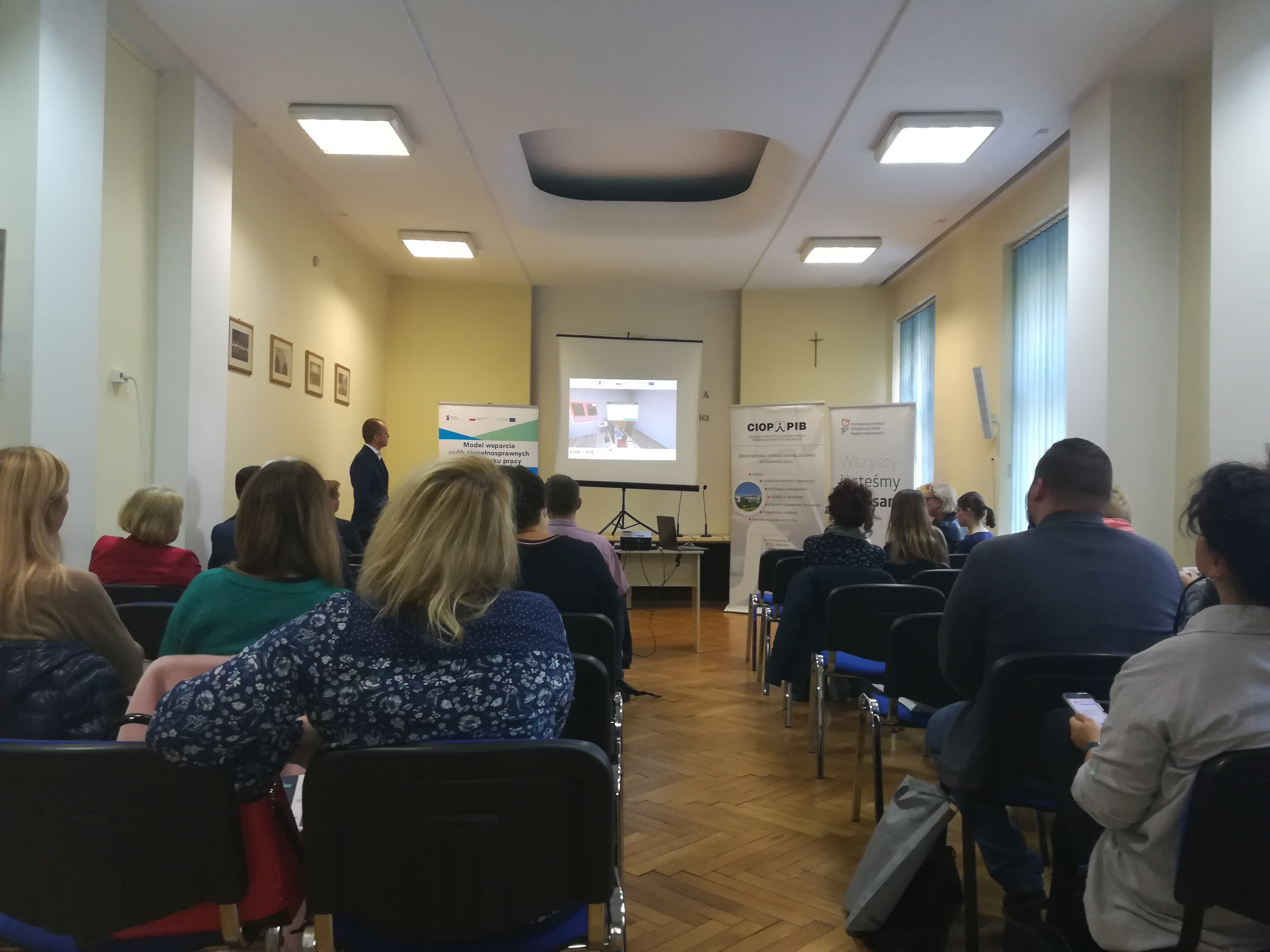 Warsztatową: w której uczestnicy mogli testować narzędzia projektowe tj. kalkulator korzyści prezentowane przez pracowników CIOP-BIP i PFRON oraz aplikacje komputerowe dotyczące wizualizacji i projektowania przez pracownika CIOP-PB.