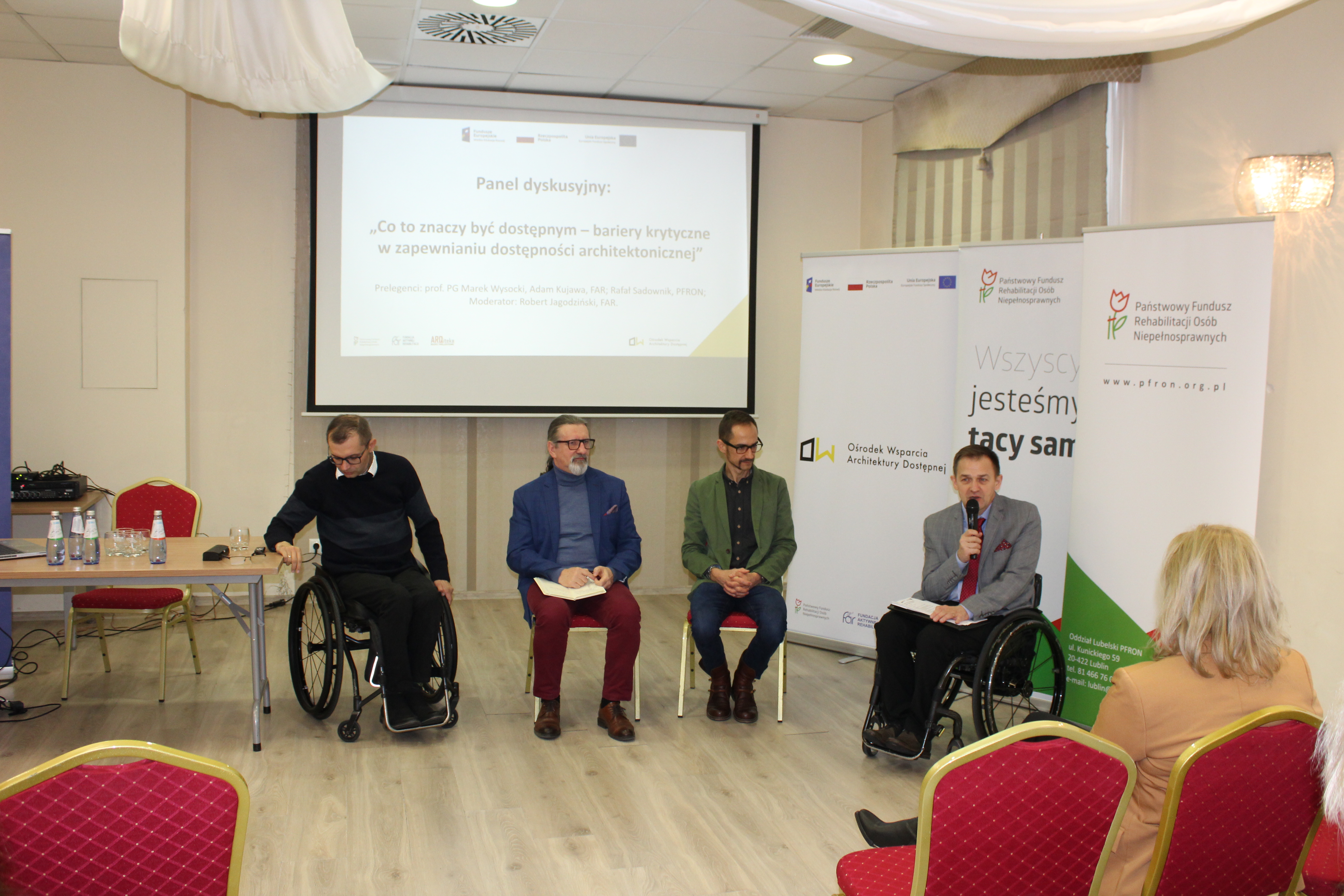 Ważnym punktem programu był panel dyskusyjny z udziałem m.in. profesora nadzwyczajnego Politechniki Gdańskiej Marka Wysockiego - architekt, Adama Kujawy przedstawiciela FAR, Rafała Sadownika Samodzielnego Specjalisty w Wydziale ds. zapewniania dostępności PFRON. Paneliści próbowali odpowiedzieć na pytanie, czym są bariery krytyczne w zapewnianiu dostępności architektonicznej.