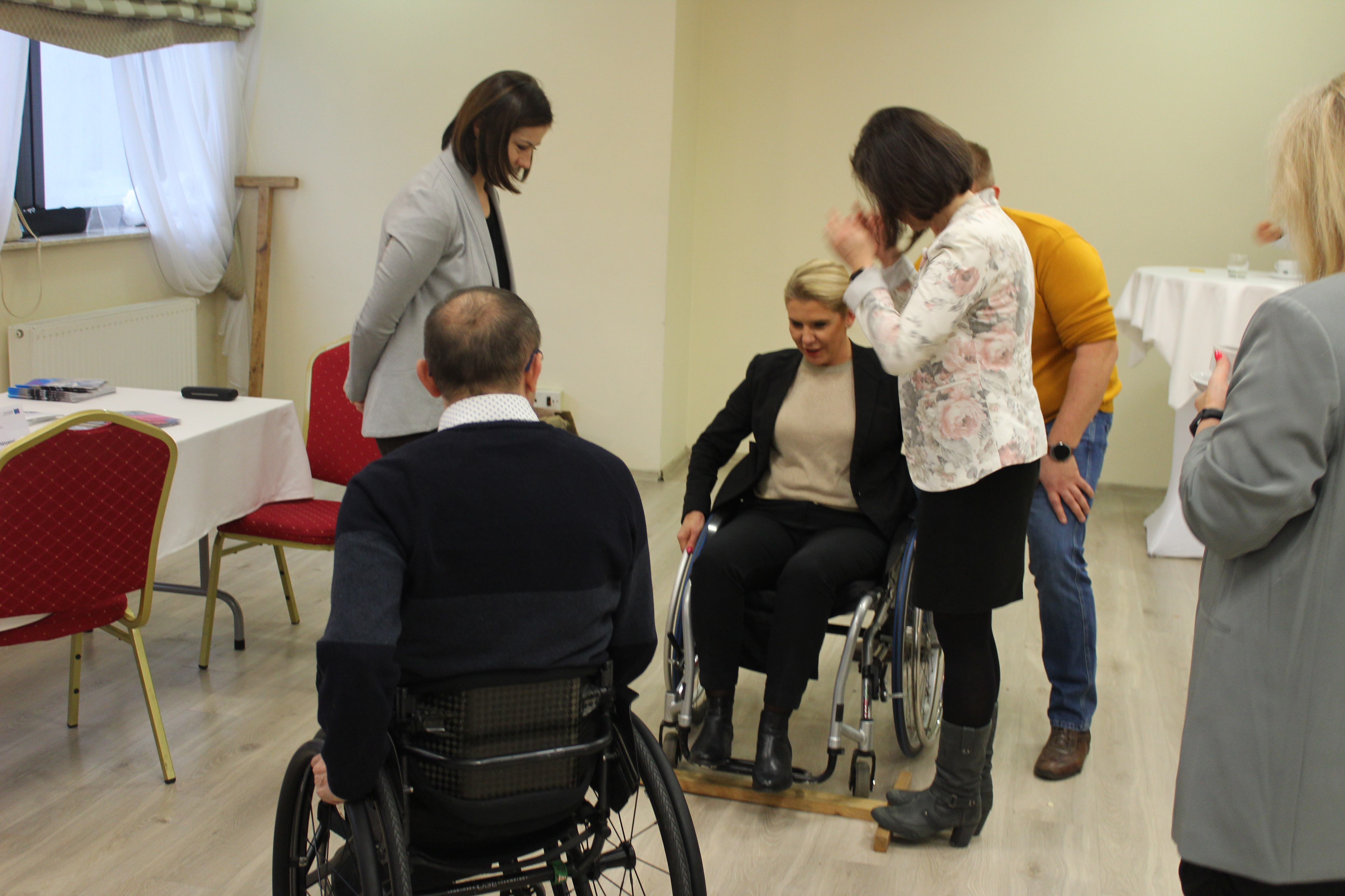 która jest liderem projektu. Wśród zaproszonych gości była Małgorzata Paprota Dyrektor Oddziału Lubelskiego PFRON, Dominika Tadla zastępca Dyrektora Departamentu Europejskiego Funduszu Społecznego w Ministerstwie Rozwoju oraz przedstawiciele podmiotów publicznych zainteresowanych poprawą dostępności architektonicznej swoich obiektów.