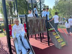 Stworzony został integracyjny plac zabaw, z którego korzystać mogą dzieci młodsze, starsze, o rożnym poziomie sprawności i umiejętności. Plac zabaw jest miejscem wspólnej socjalizacji i tworzy przestrzeń służąca do rozwoju ruchu, pomysłowej zabawy oraz rozrywki.